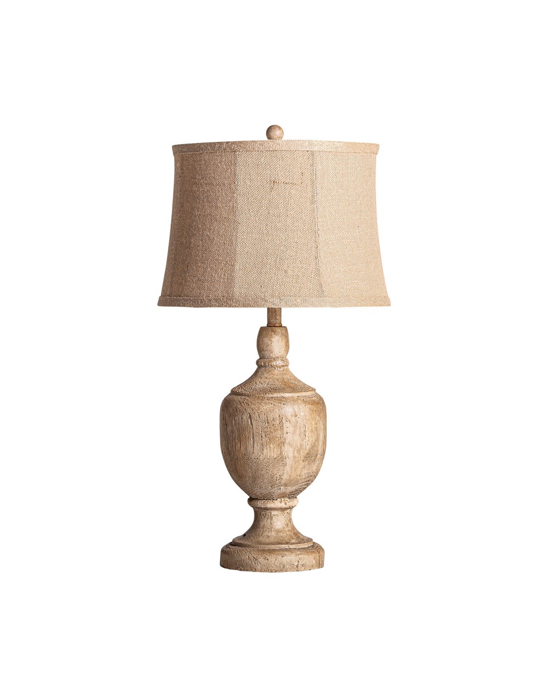 LÁMPARA DE SOBREMESA, EN COLOR MARRÓN ENVEJECIDO, DE ESTILO PROVENZAL. FABRICADO EN RESINA, COMBINADO CON YUTE. PRODUCTO DESMONTABLE.