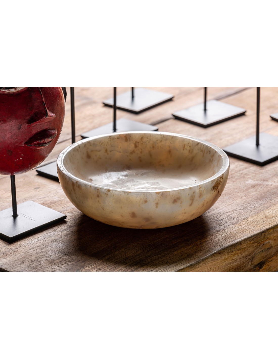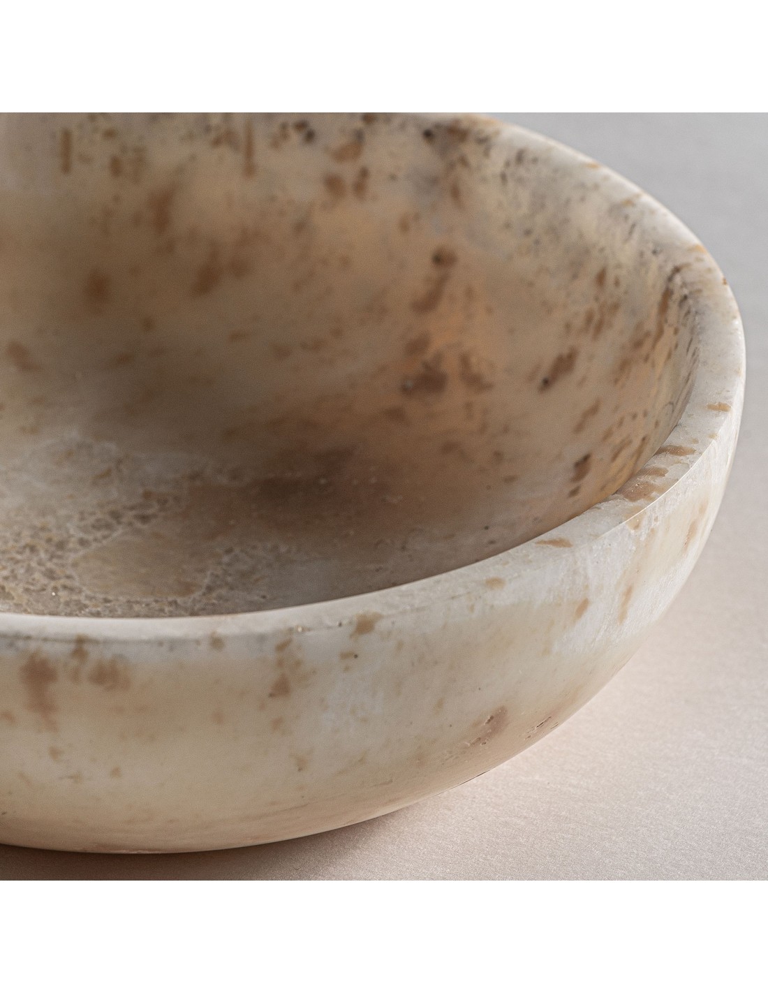 CENTRO DE MESA REDONDO DAILY, EN COLOR MARFIL ENVEJECIDO, DE ESTILO NÓRDICO. FABRICADO EN ONIX.