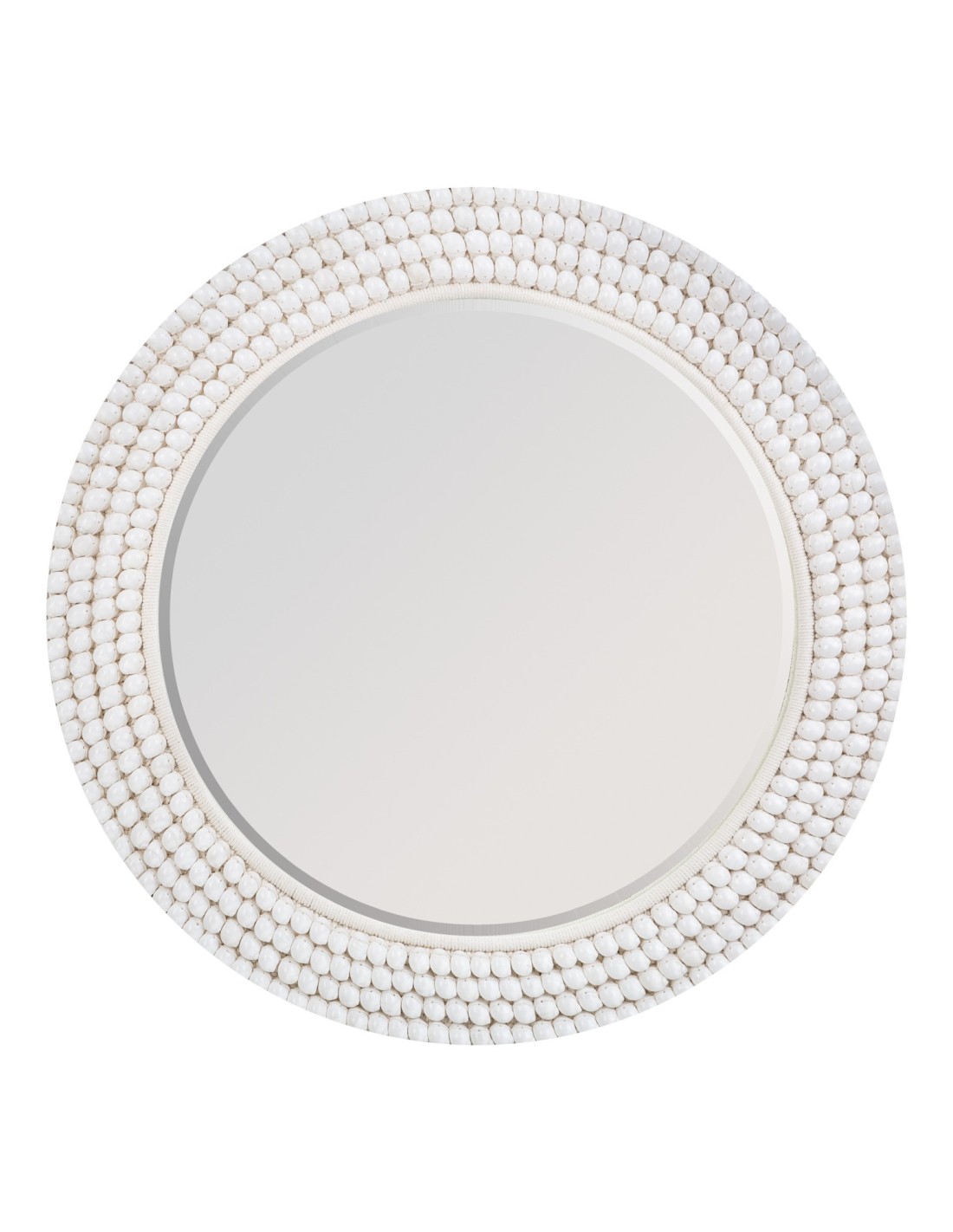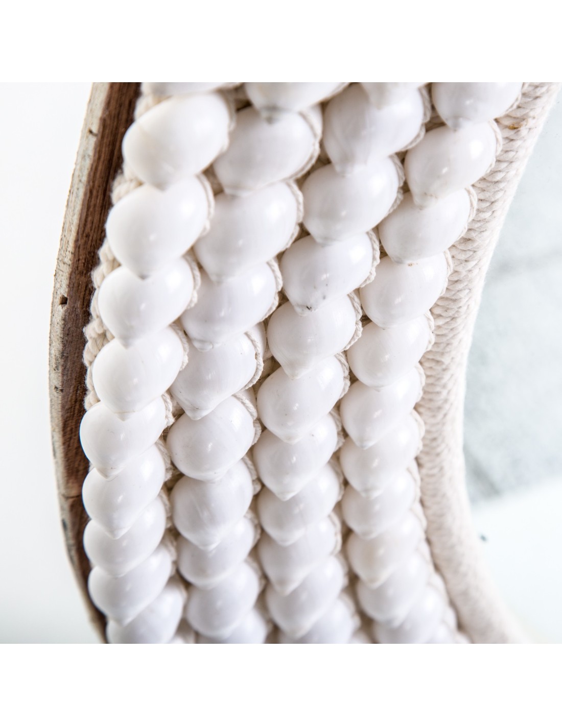 ESPEJO REDONDO, EN COLOR BLANCO, DE ESTILO NÓRDICO. FABRICADO EN CUERDA, COMBINADO CON CONCHA Y ESPEJO.