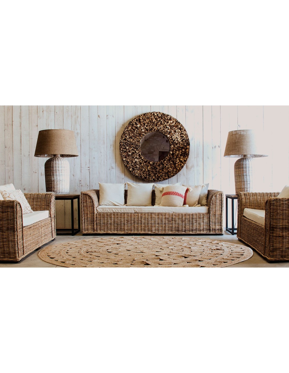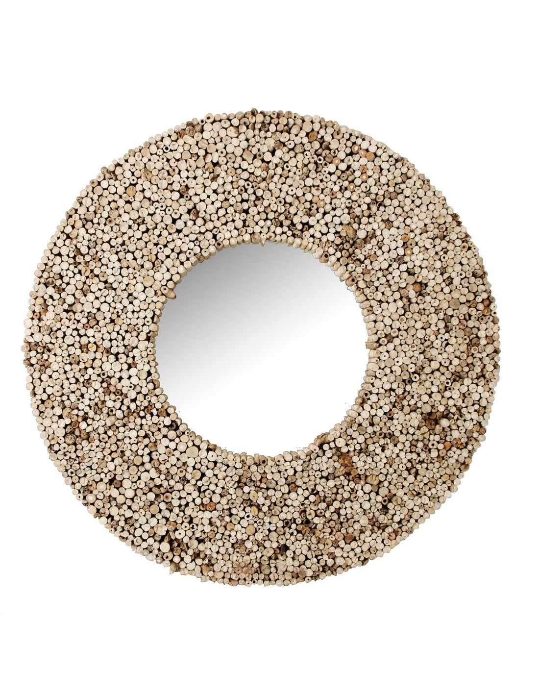 ESPEJO REDONDO MAUN, EN COLOR MARRÓN, DE ESTILO ÉTNICO. FABRICADO EN MADERA DE TEKA, COMBINADO CON ESPEJO.
