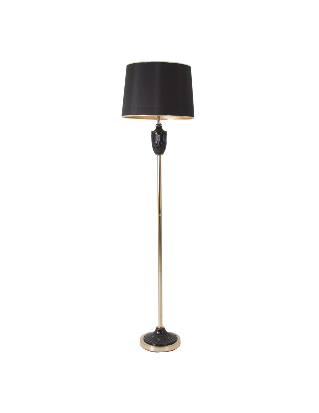 LÁMPARA DE PIE, EN COLOR NEGRO/ORO, DE ESTILO CLÁSICO. FABRICADO EN HIERRO, COMBINADO CON VIDRIO Y POLIÉSTER.