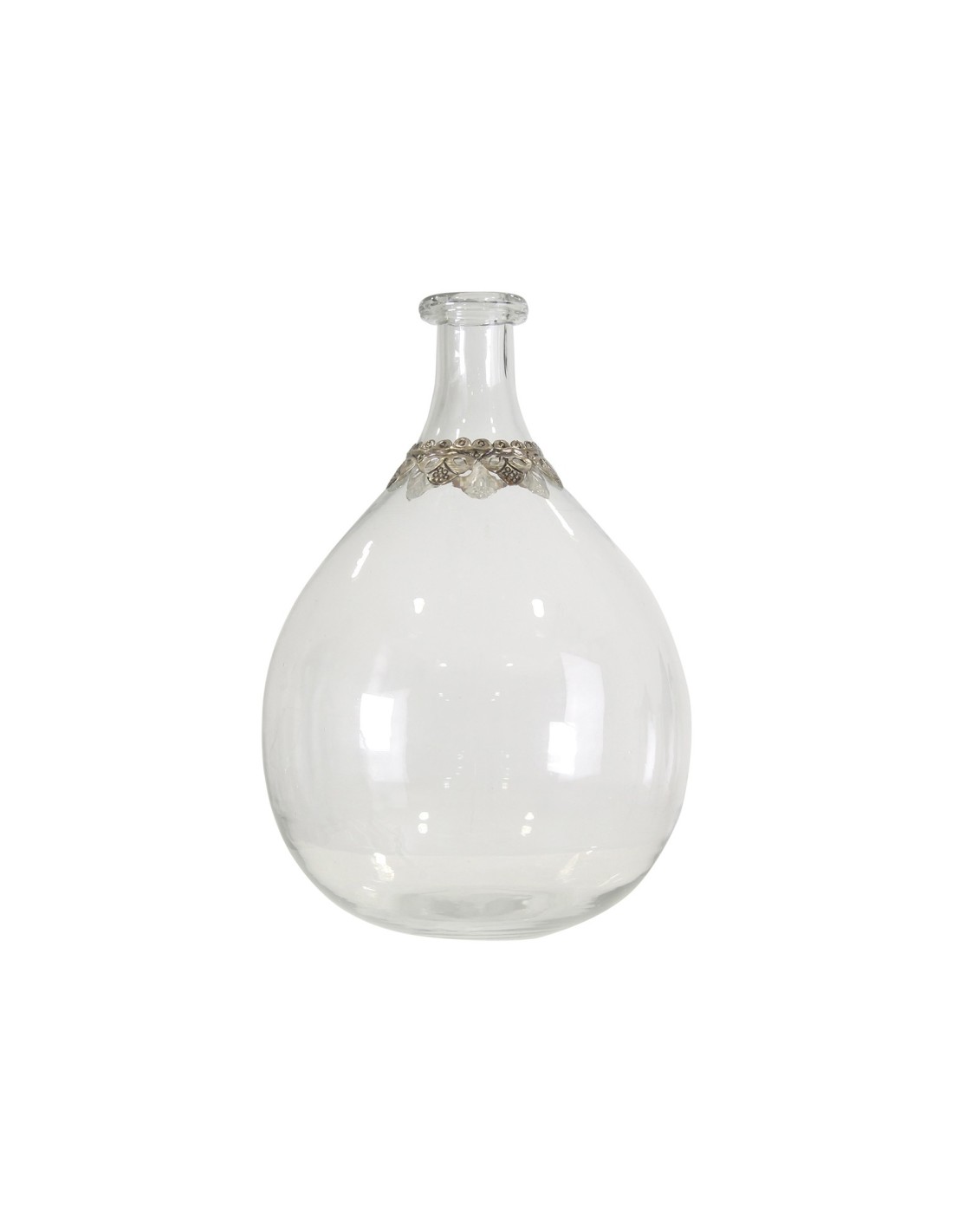 JARRÓN BIRGIT, EN COLOR PLATA VIEJO, DE ESTILO ART DECO. FABRICADO EN VIDRIO, COMBINADO CON METAL.