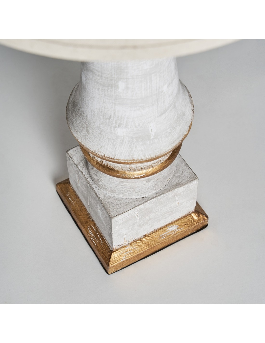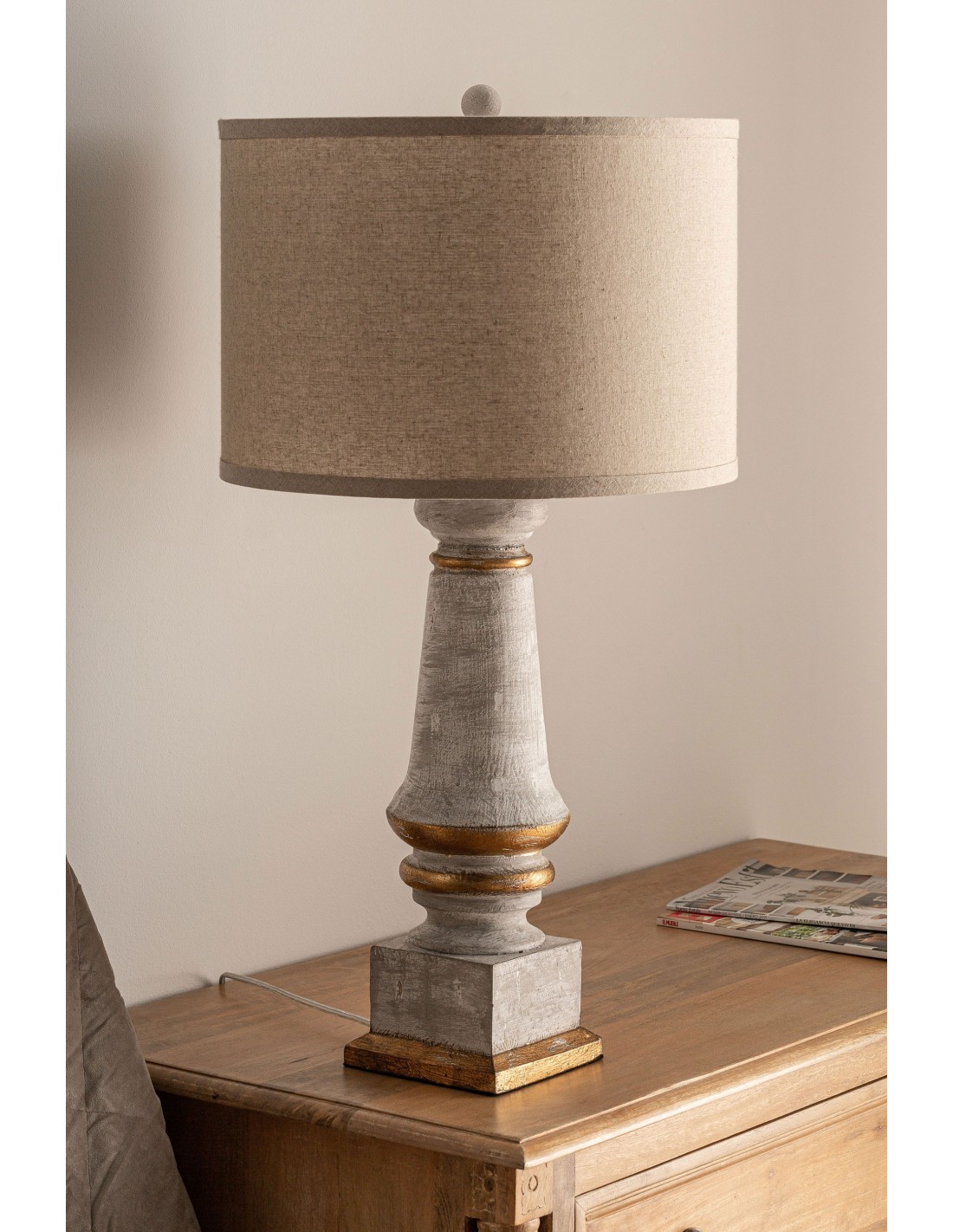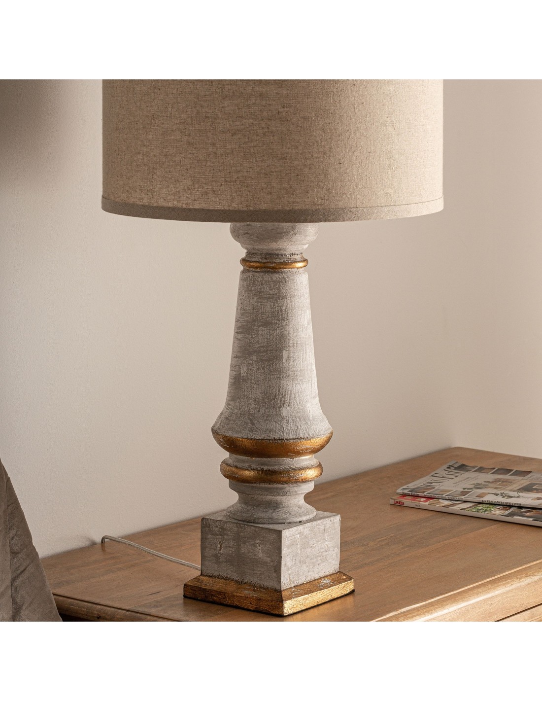 LÁMPARA DE SOBREMESA, EN COLOR BLANCO/ORO DECAPADO, DE ESTILO PROVENZAL. FABRICADO EN RESINA, COMBINADO CON LINO. PRODUCTO DESMONTABLE.