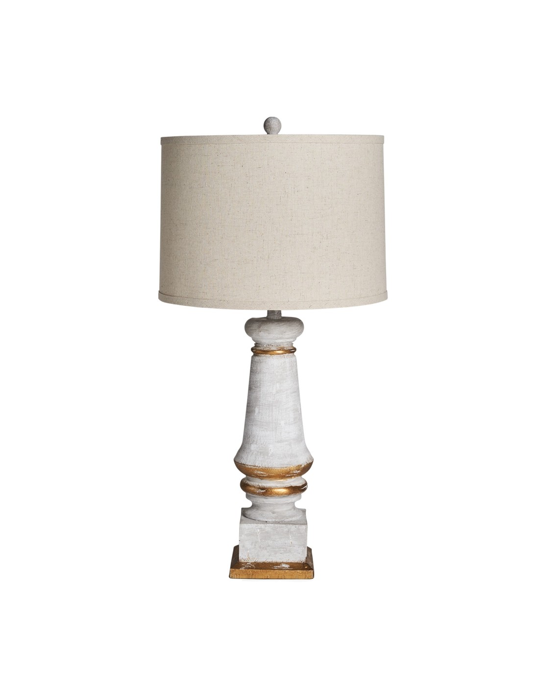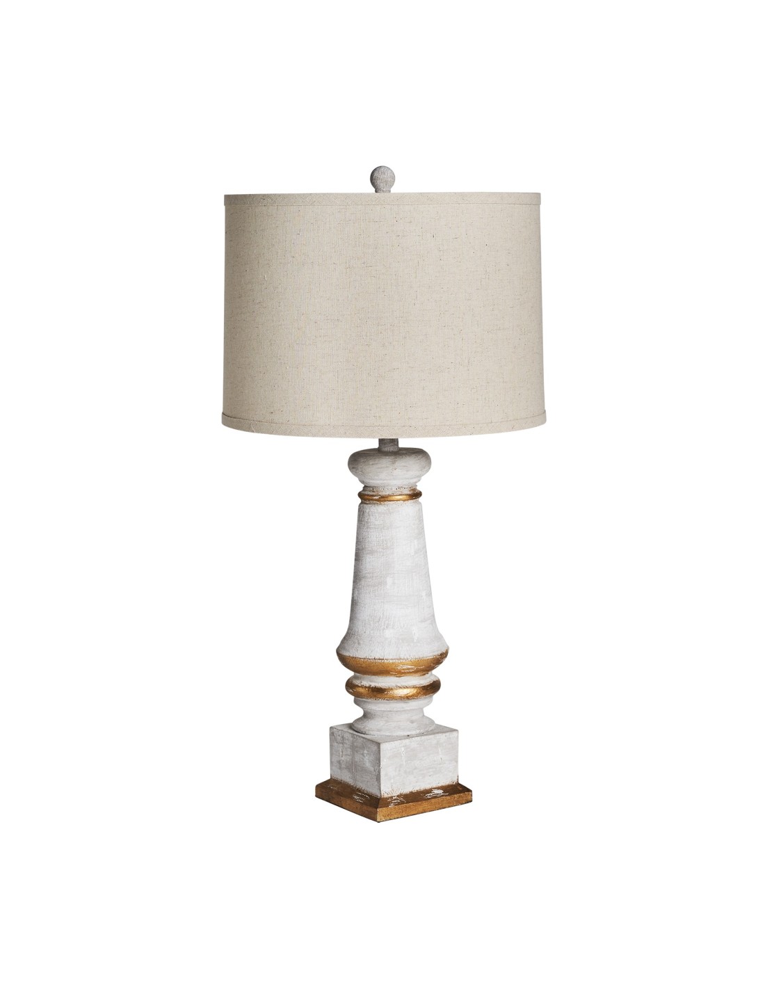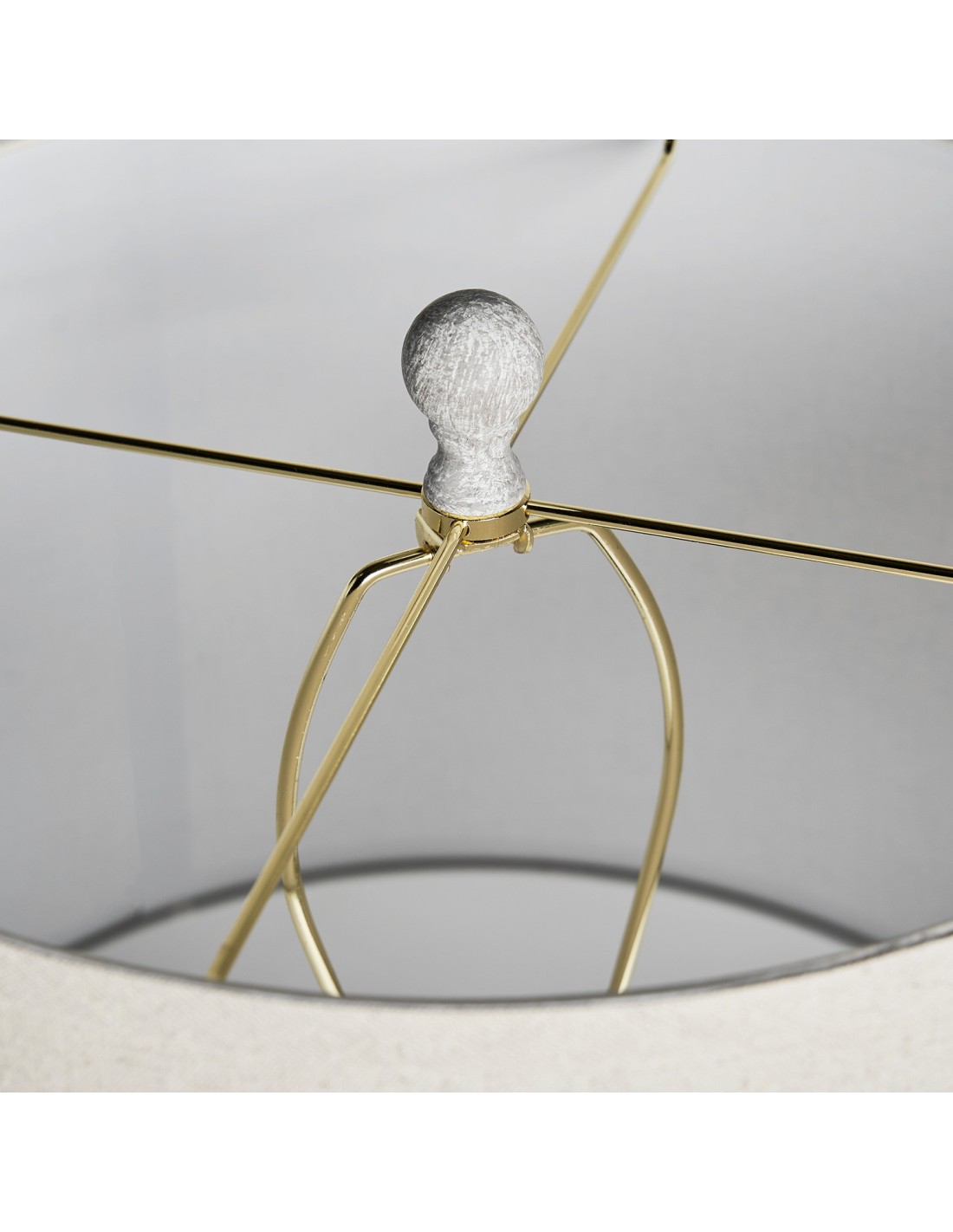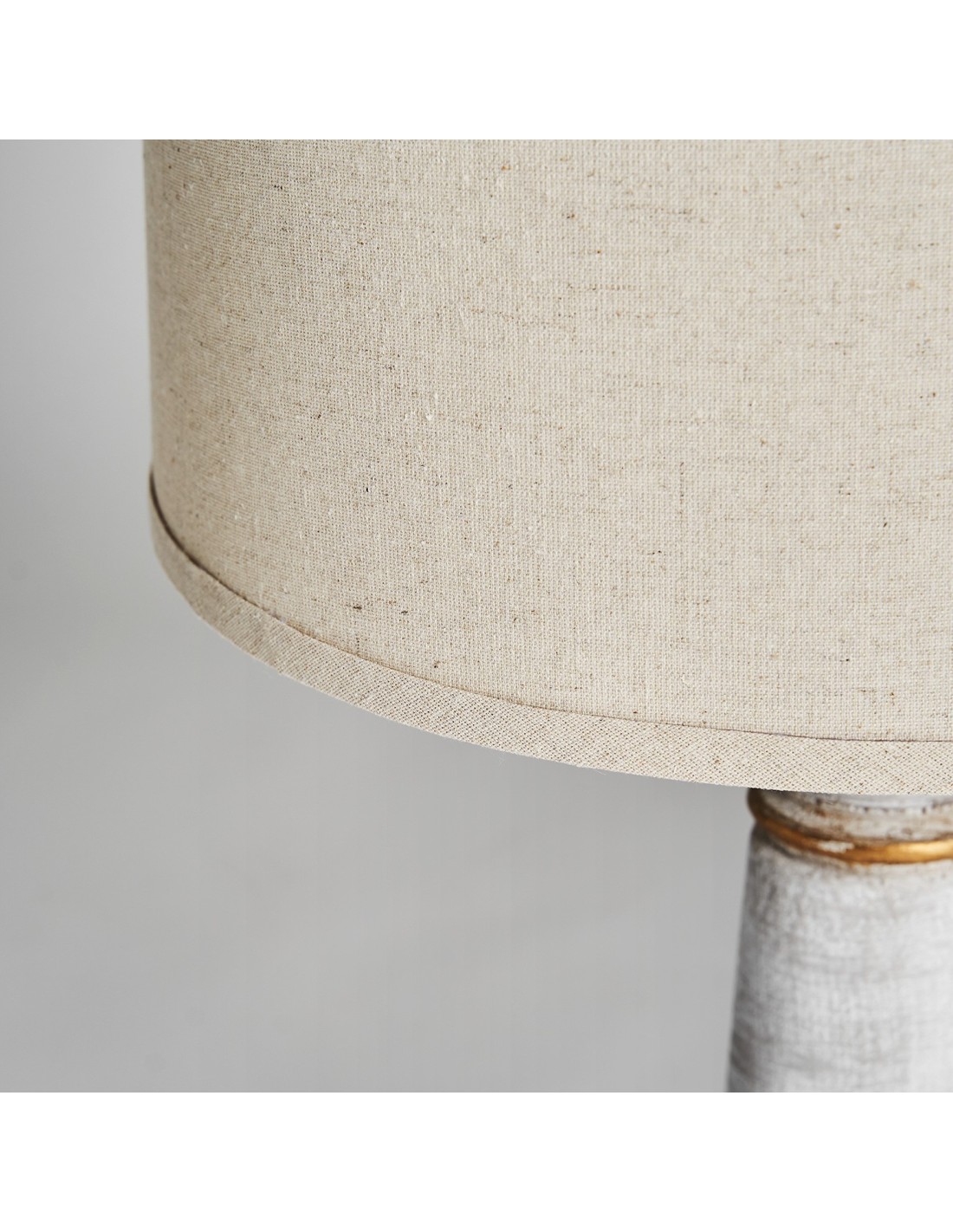 LÁMPARA DE SOBREMESA, EN COLOR BLANCO/ORO DECAPADO, DE ESTILO PROVENZAL. FABRICADO EN RESINA, COMBINADO CON LINO. PRODUCTO DESMONTABLE.