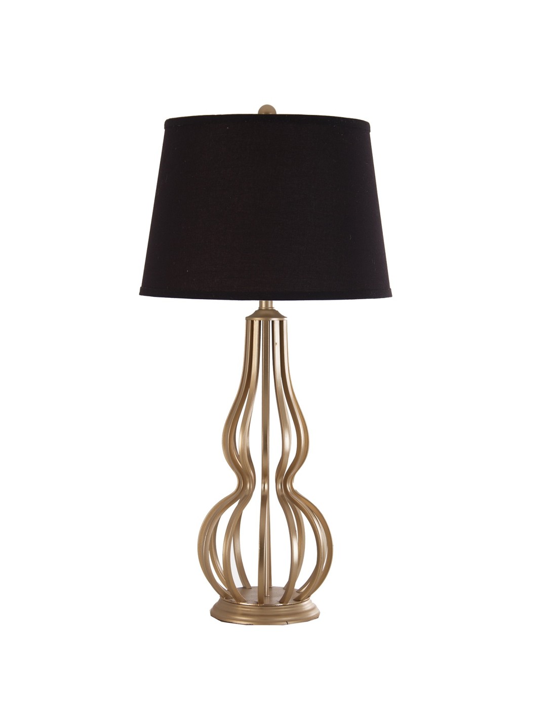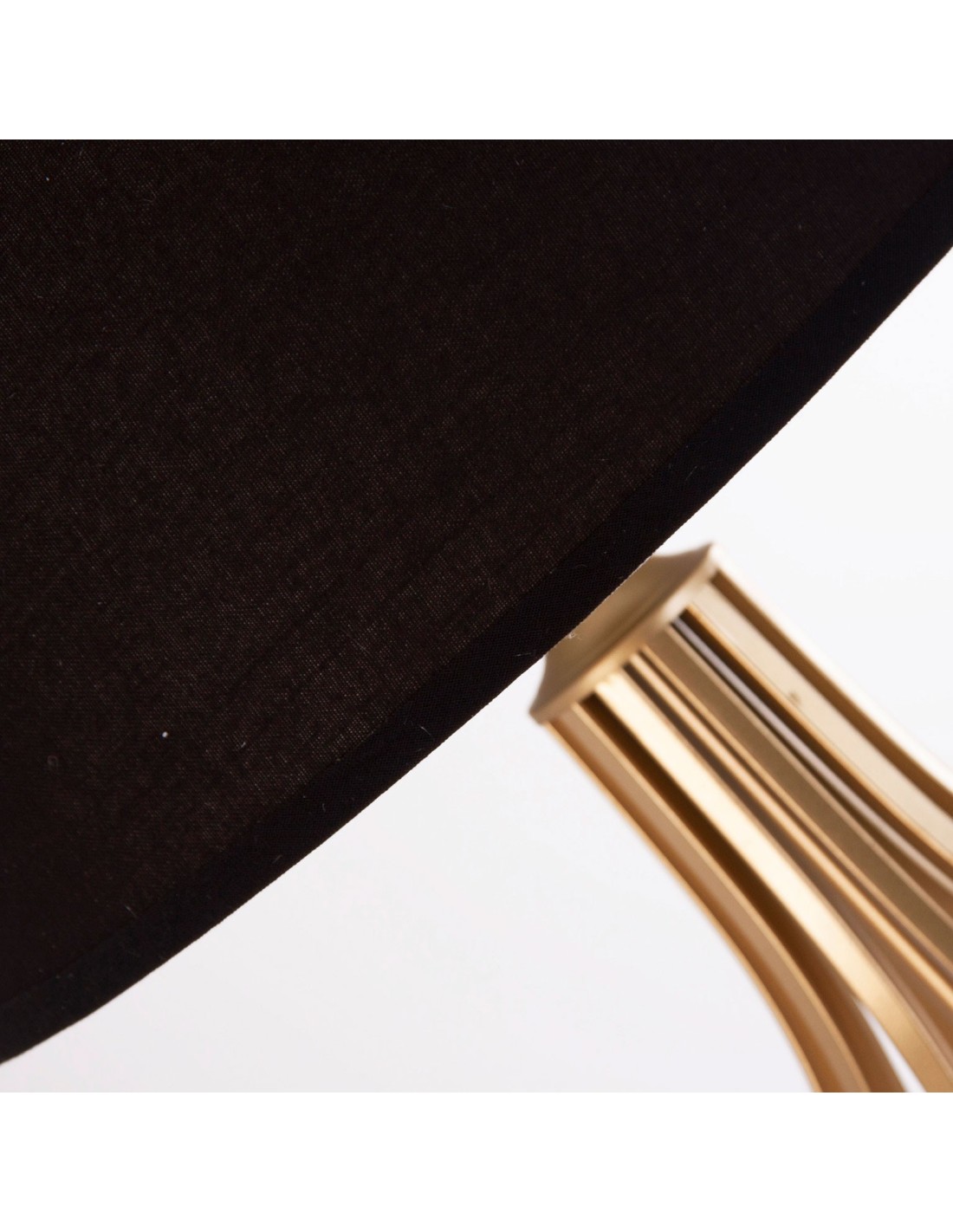 LÁMPARA DE SOBREMESA, EN COLOR DORADO, DE ESTILO ART DECO.FABRICADO EN HIERRO, COMBINADO CON LINO.PRODUCTO DESMONTABLE.