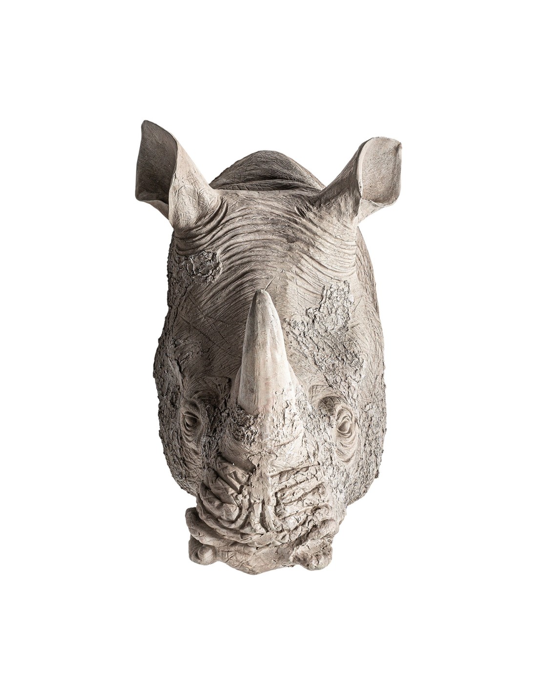 BUSTO RINOCERONTE, EN COLOR GRIS ENVEJECIDO, DE ESTILO NÓRDICO. FABRICADO EN RESINA.