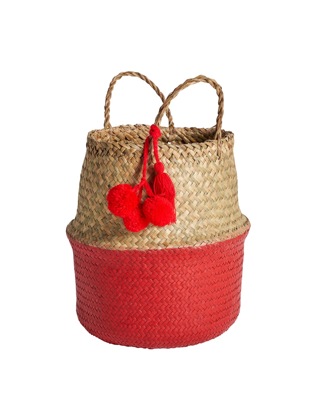 CESTO AMALIA, EN COLOR ROJO, DE ESTILO VINTAGE. FABRICADO EN RATÁN.