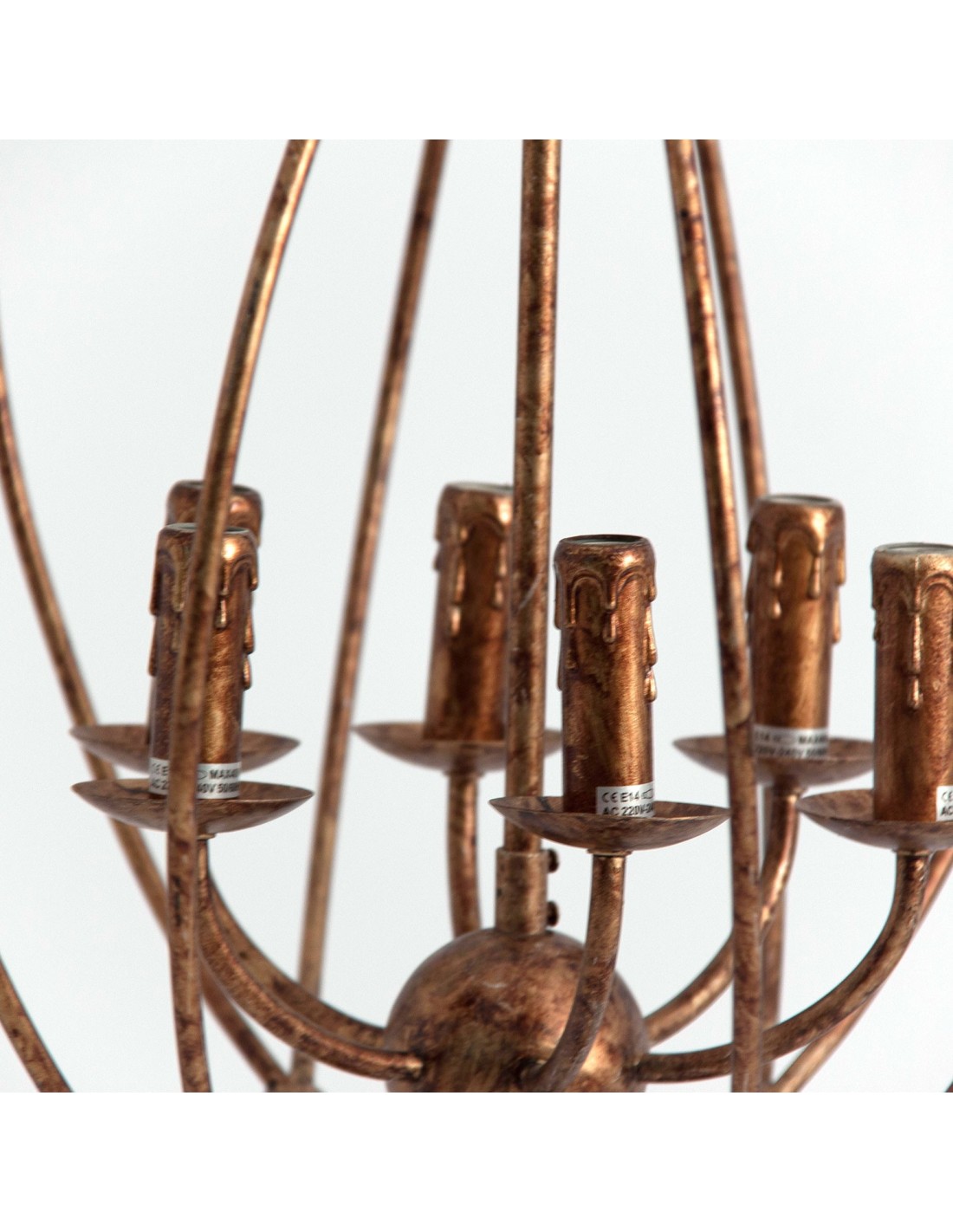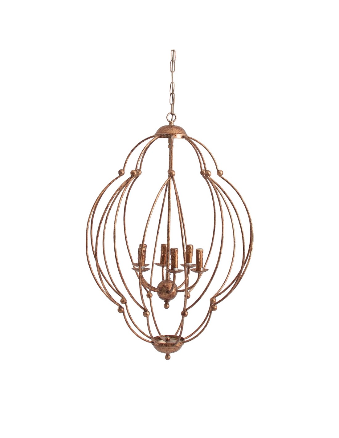 LÁMPARA DE COLGAR, EN COLOR COBRE ENVEJECIDO, DE ESTILO CLÁSICO. FABRICADO EN HIERRO.