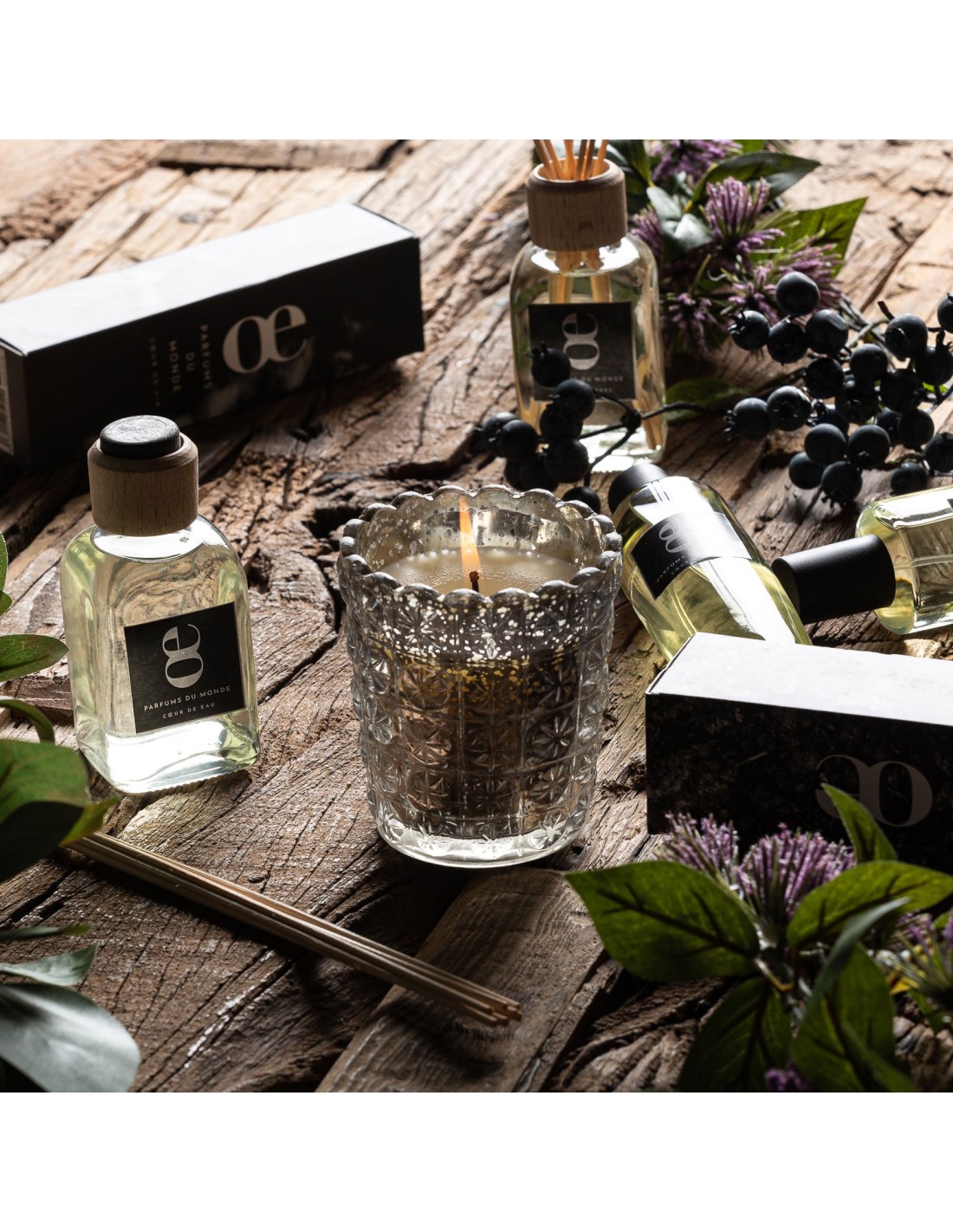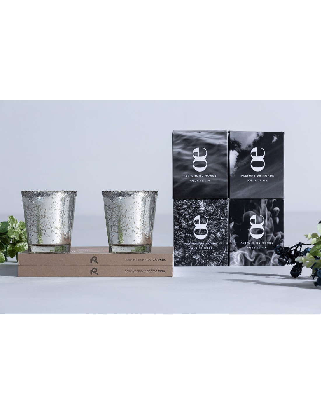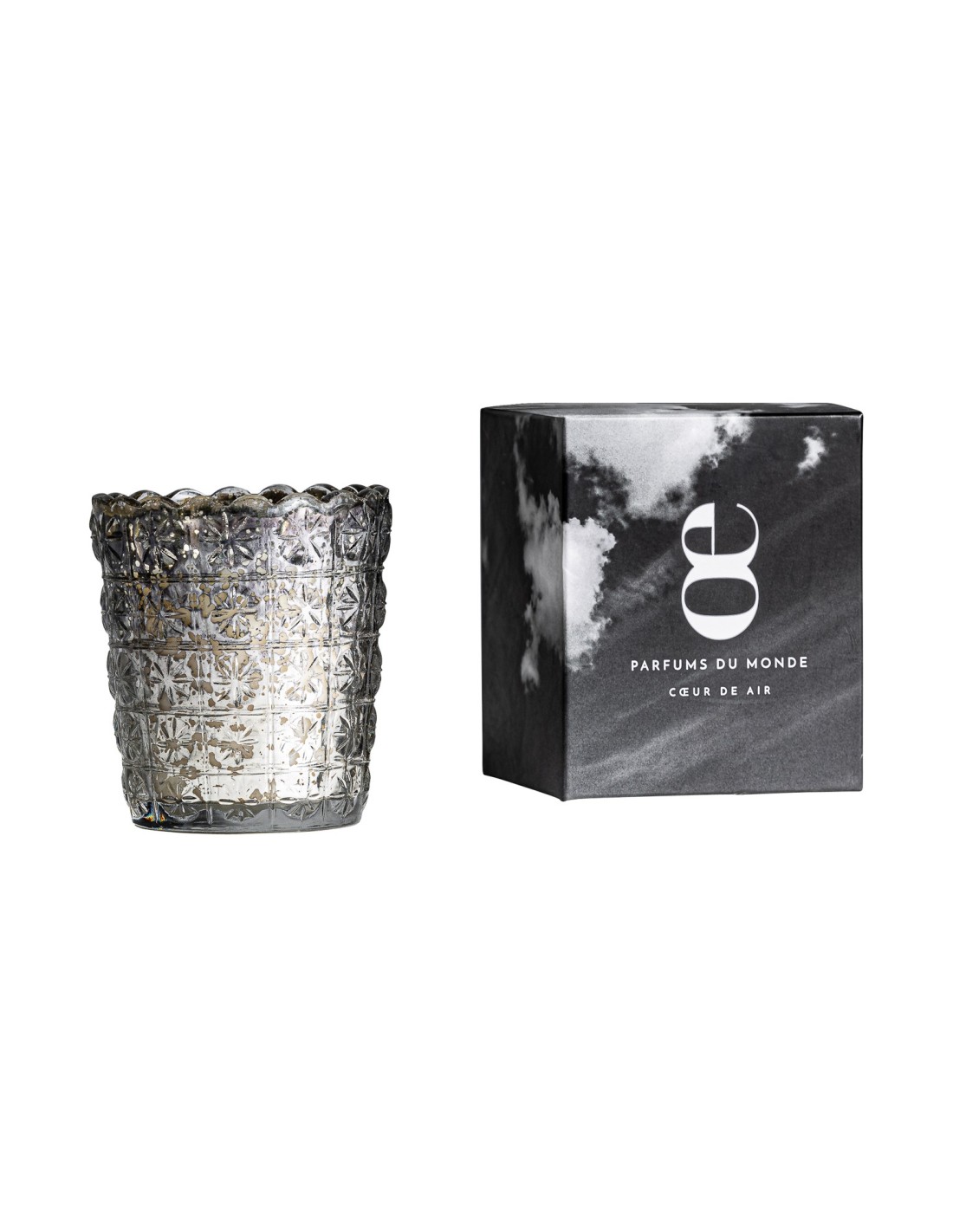 VELA AIRE, EN COLOR PLATA VIEJO, DE ESTILO CLÁSICO. FABRICADO EN CERA, COMBINADO CON VIDRIO.