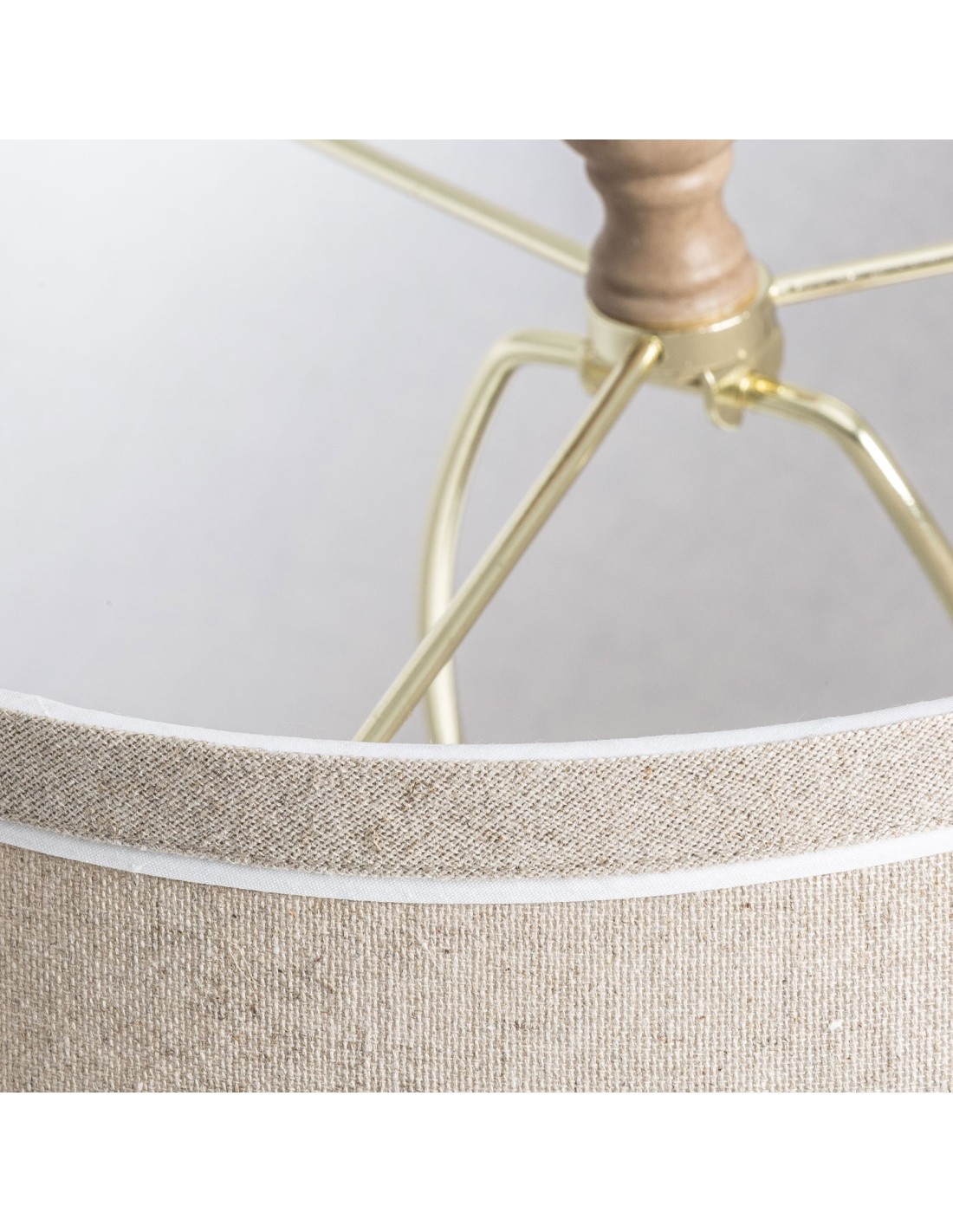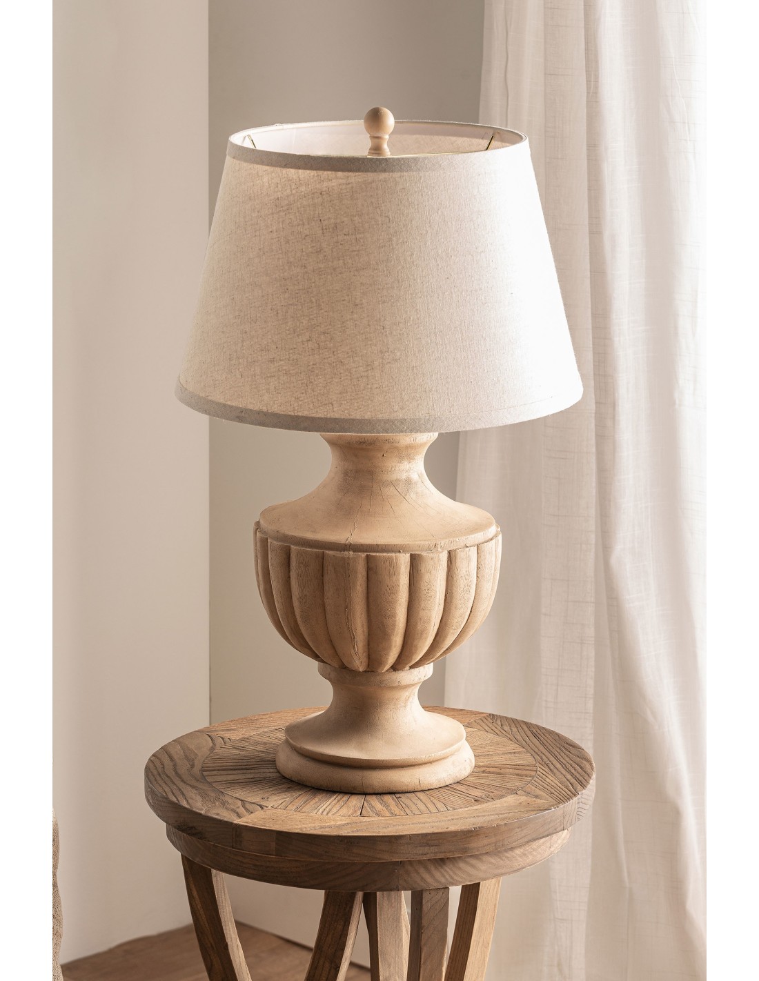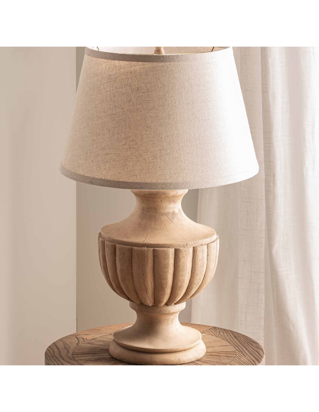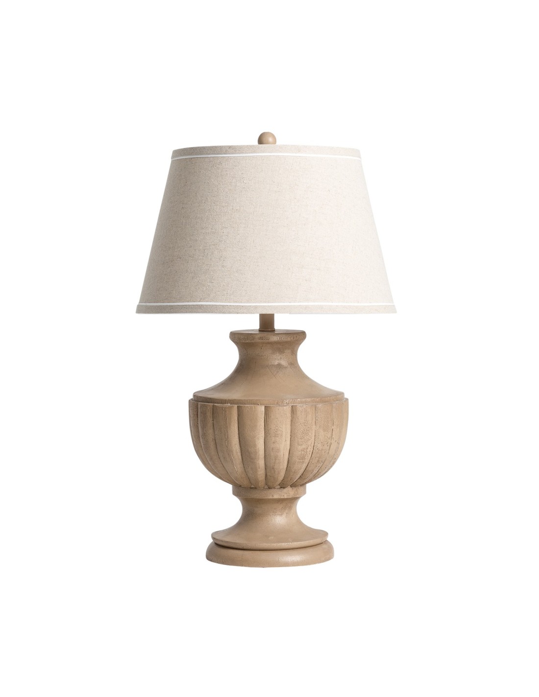 LÁMPARA DE SOBREMESA, EN COLOR MARRÓN, DE ESTILO PROVENZAL. FABRICADO EN RESINA, COMBINADO CON POLIÉSTER Y LINO. PRODUCTO DESMONTABLE.