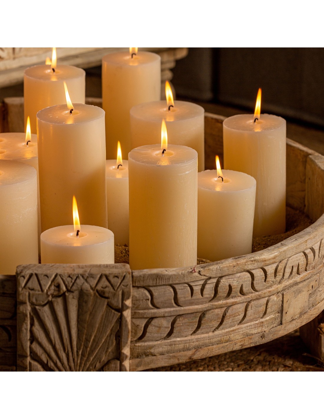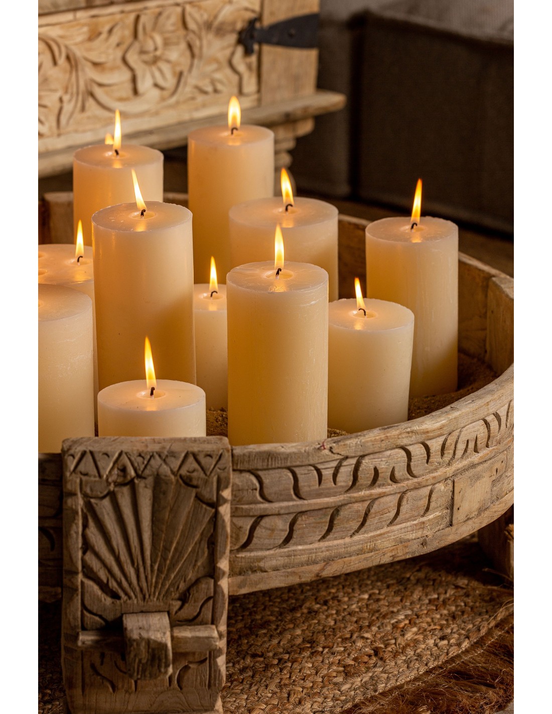 VELA REDONDA GRASLE, EN COLOR CREMA, DE ESTILO CLÁSICO. FABRICADO EN CERA.
