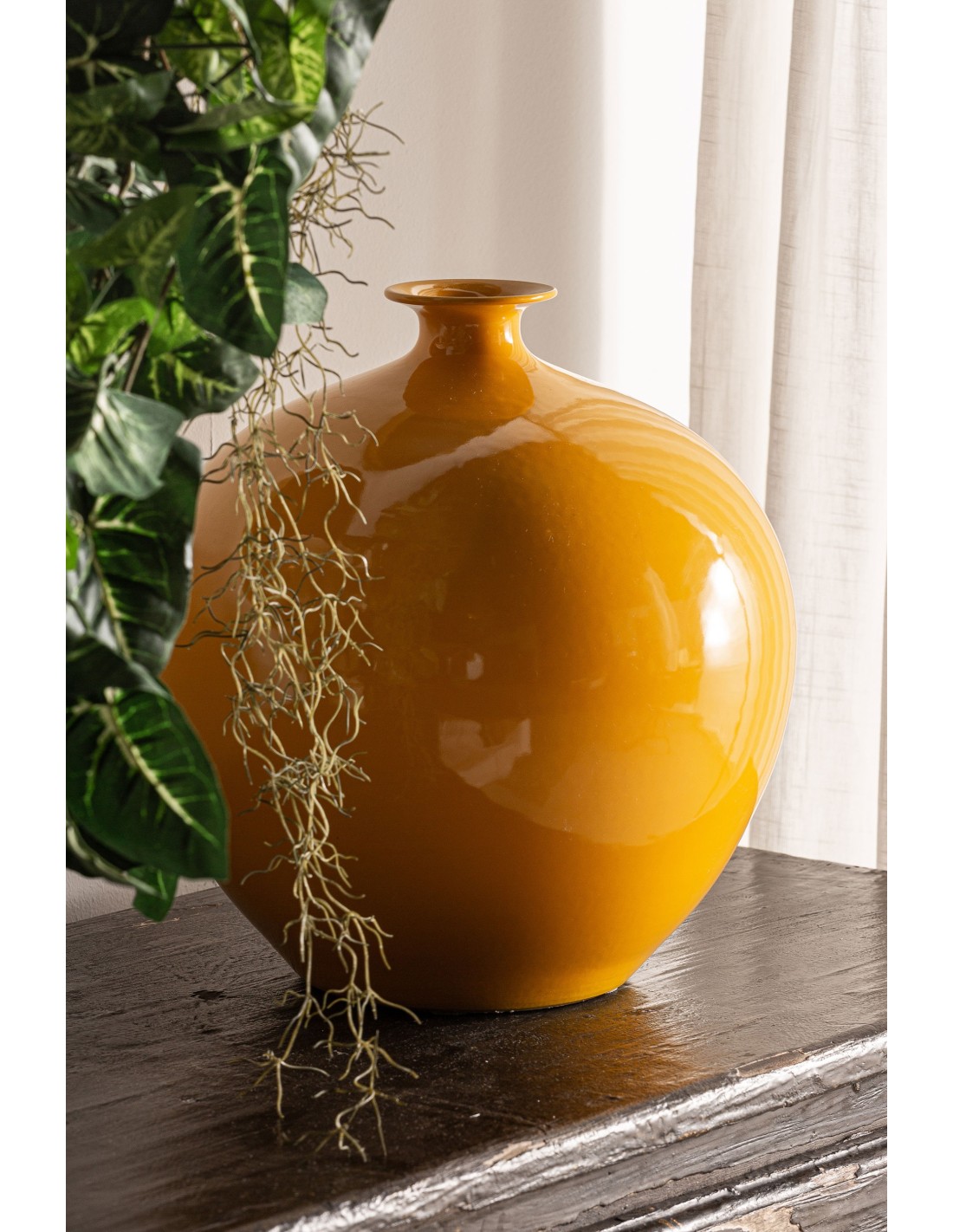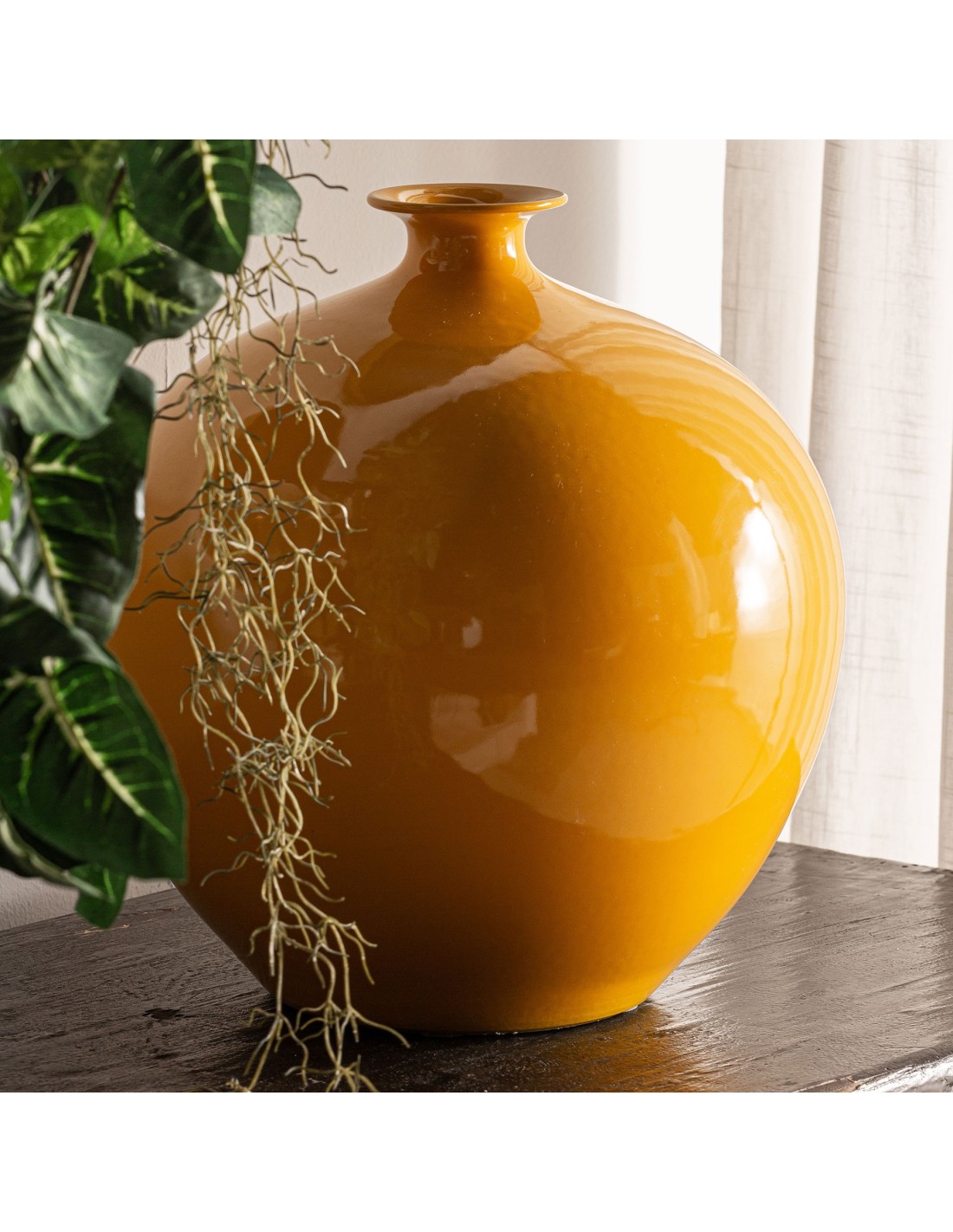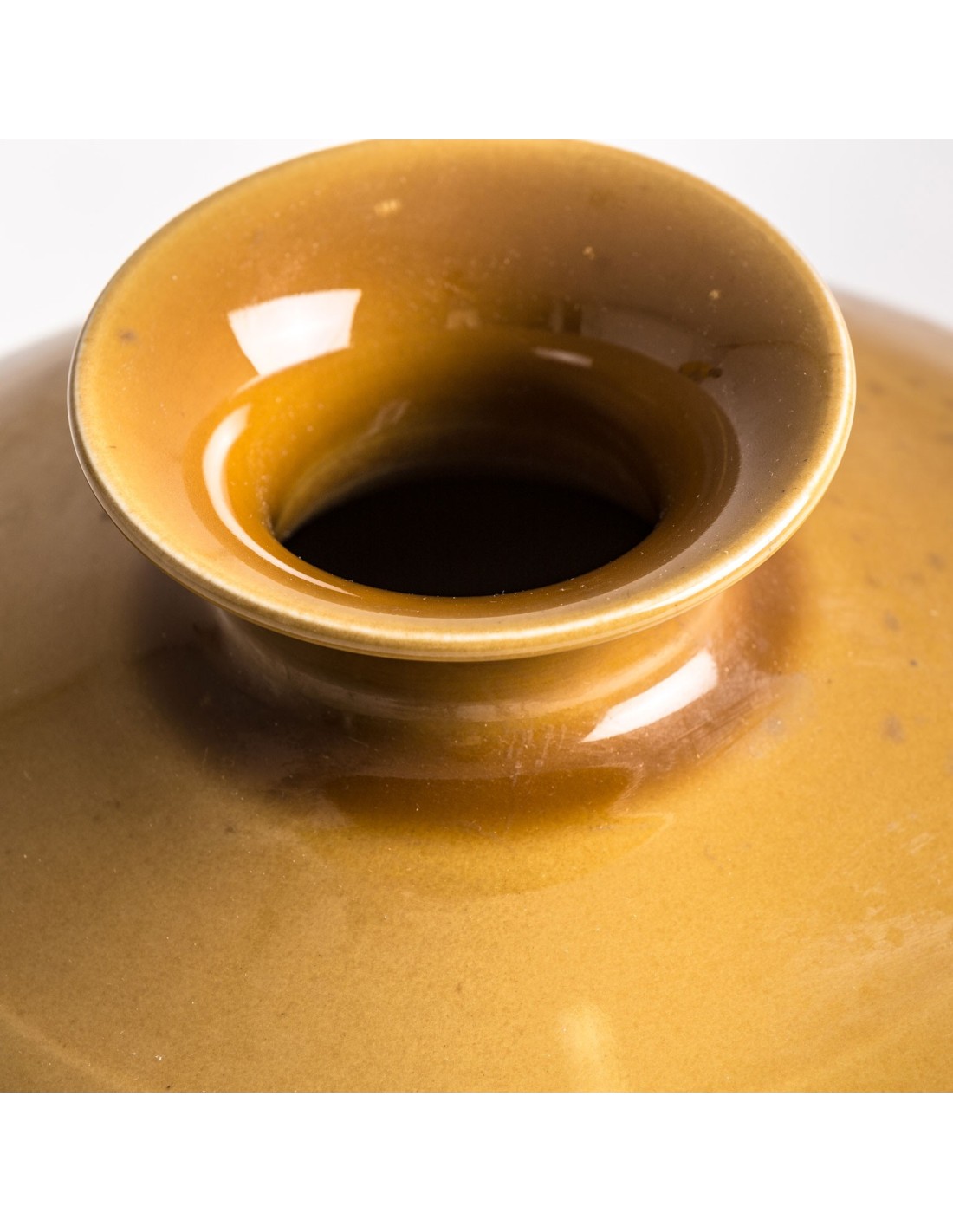 JARRÓN MOSTAZA, EN COLOR MOSTAZA, DE ESTILO COLONIAL. FABRICADO EN CERÁMICA.