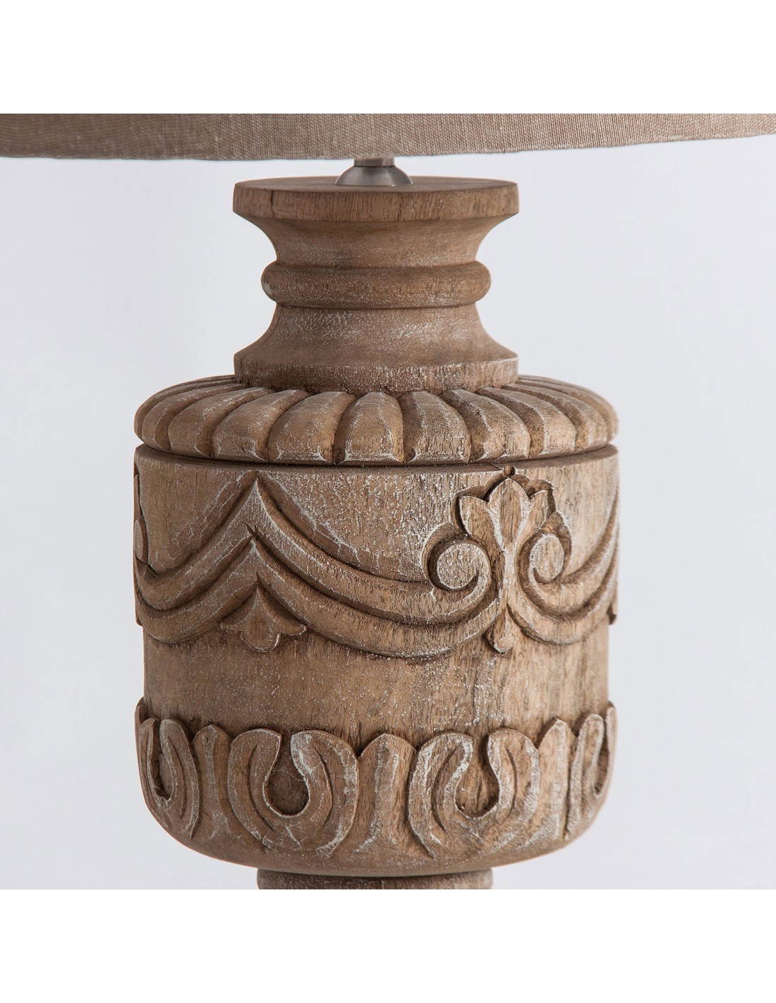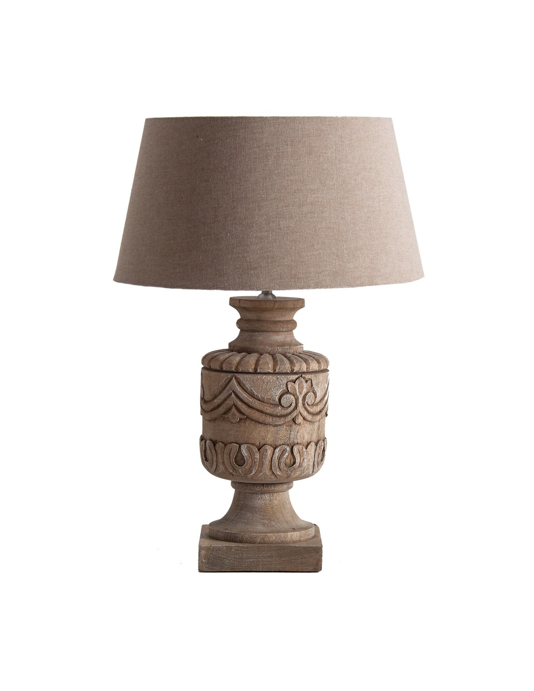 LÁMPARA DE SOBREMESA, EN COLOR MARRÓN/BEIGE, DE ESTILO PROVENZAL. FABRICADO EN MADERA DE MANGO, COMBINADO CON ALGODÓN.