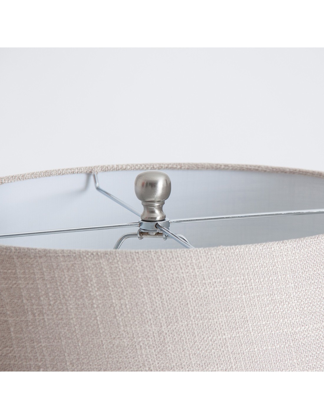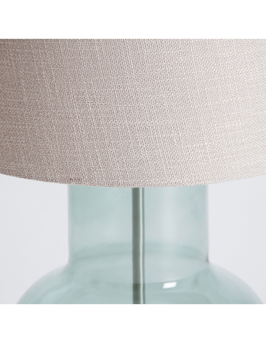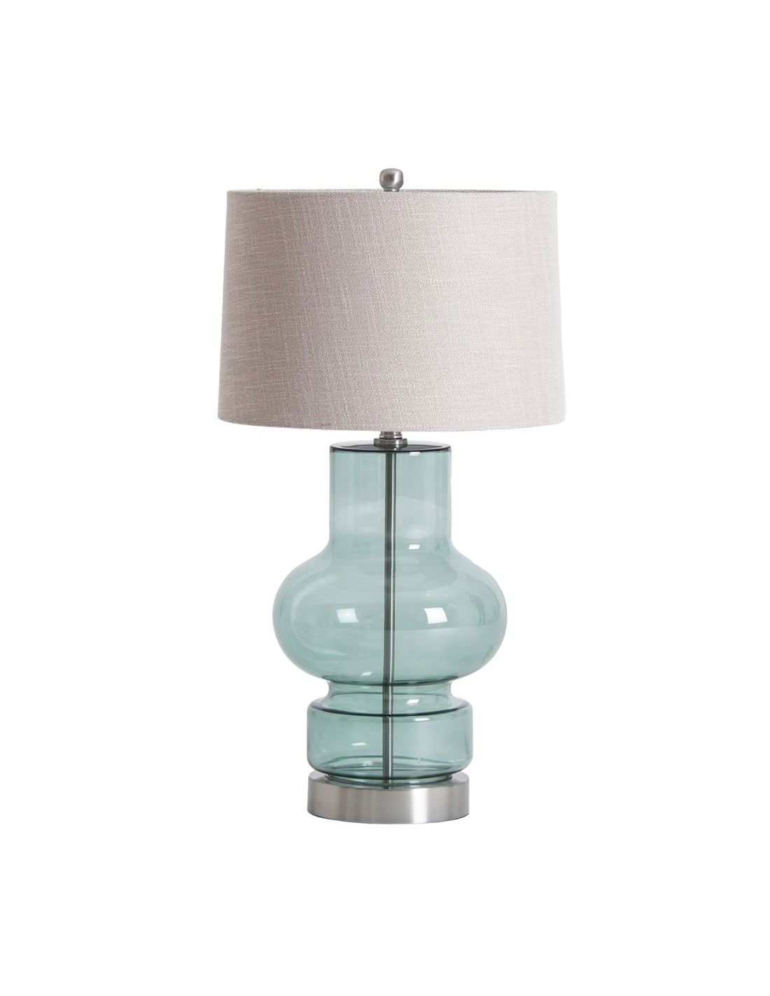 LÁMPARA DE SOBREMESA, EN COLOR GRIS OSCURO, DE ESTILO CLÁSICO. FABRICADO EN VIDRIO, COMBINADO CON HIERRO Y LINO.