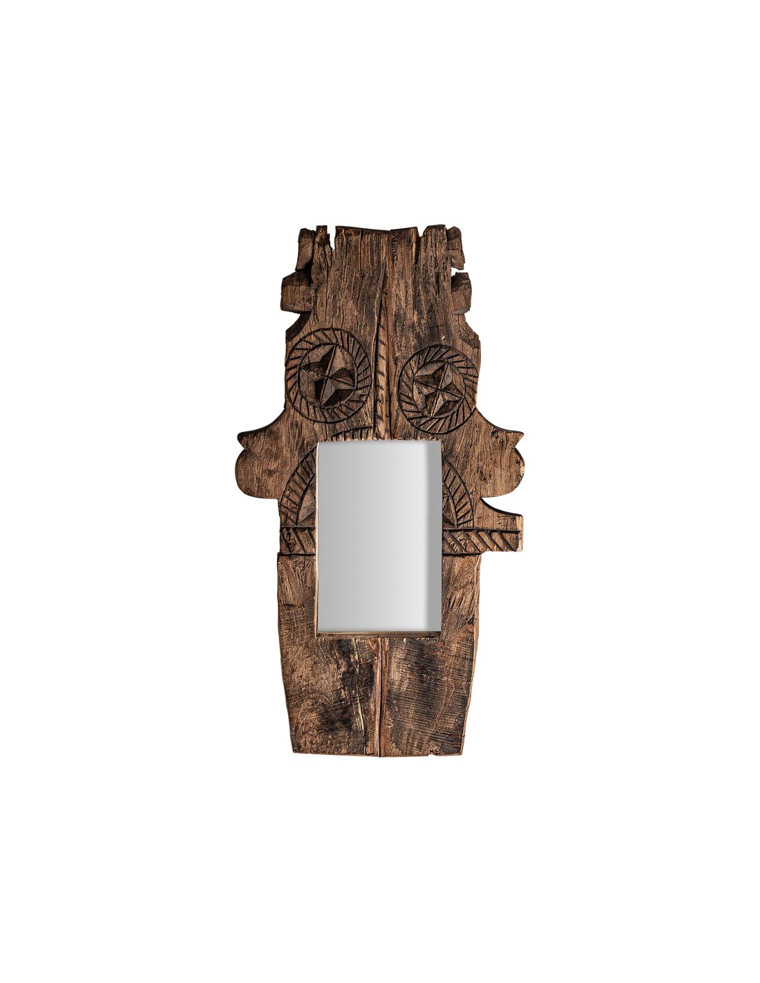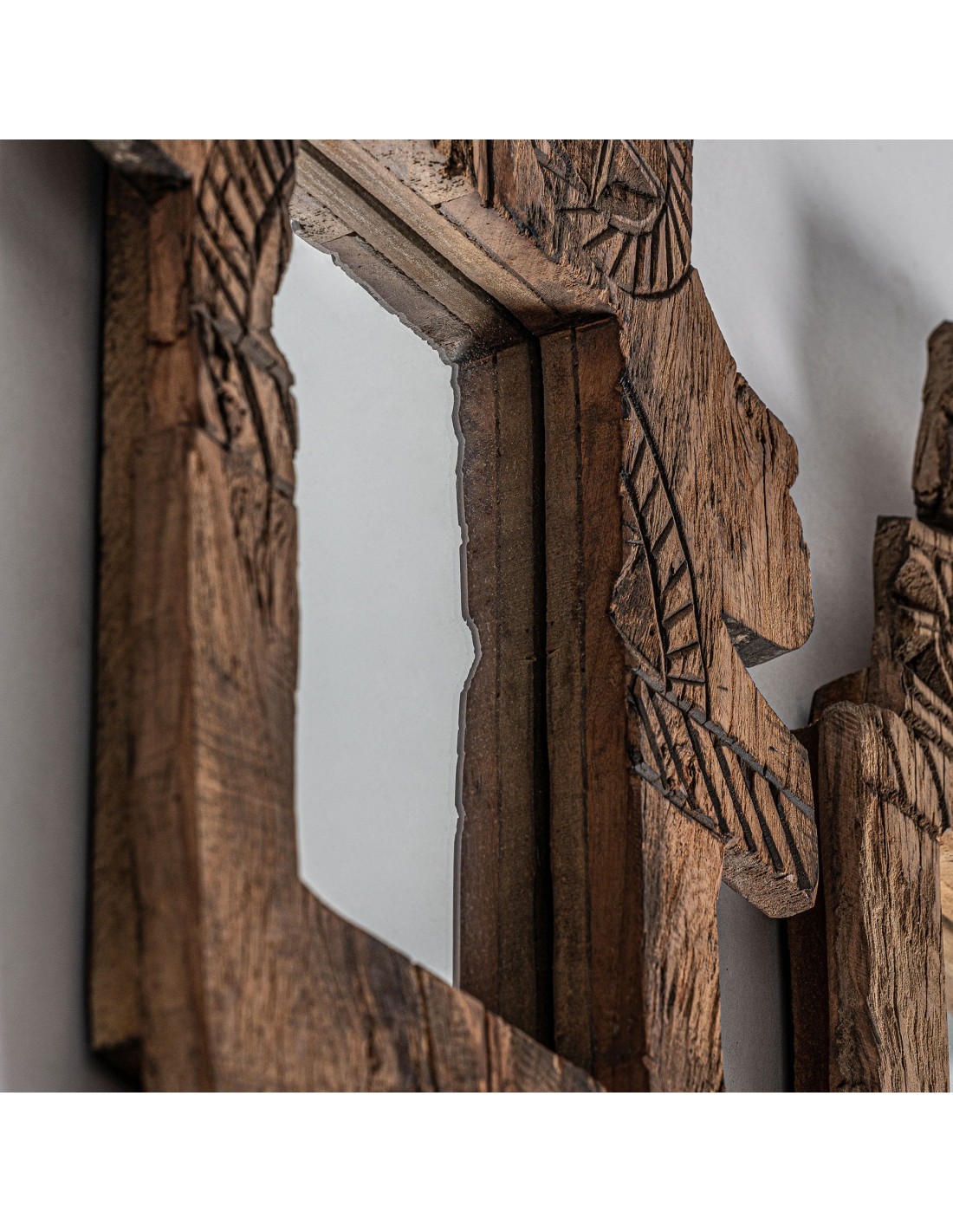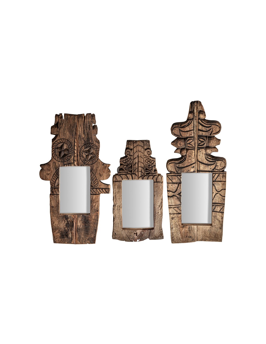 ESPEJO SURTIDO 3 KUHAL, DE ESTILO ÉTNICO. FABRICADO EN MADERA DE MANGO, EN COLOR MARRÓN TALLADO, COMBINADO CON ESPEJO.