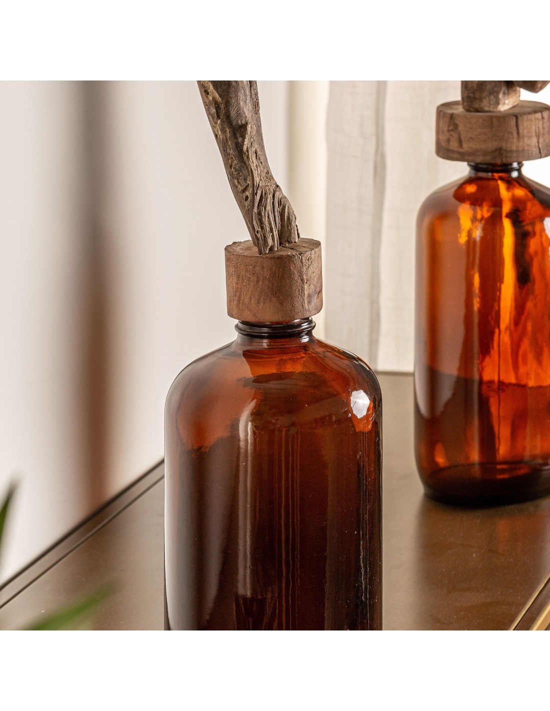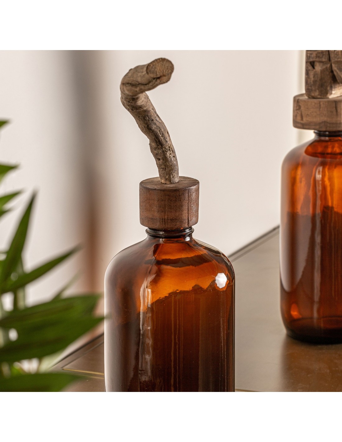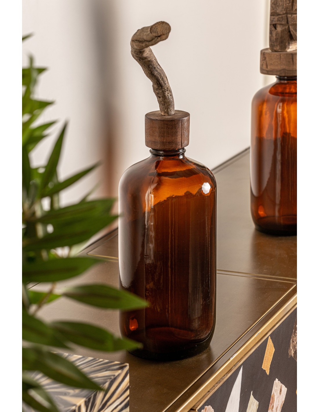 BOTELLA DECORATIVA TRONCO, EN COLOR BURDEOS, DE ESTILO ÉTNICO. FABRICADO EN VIDRIO.