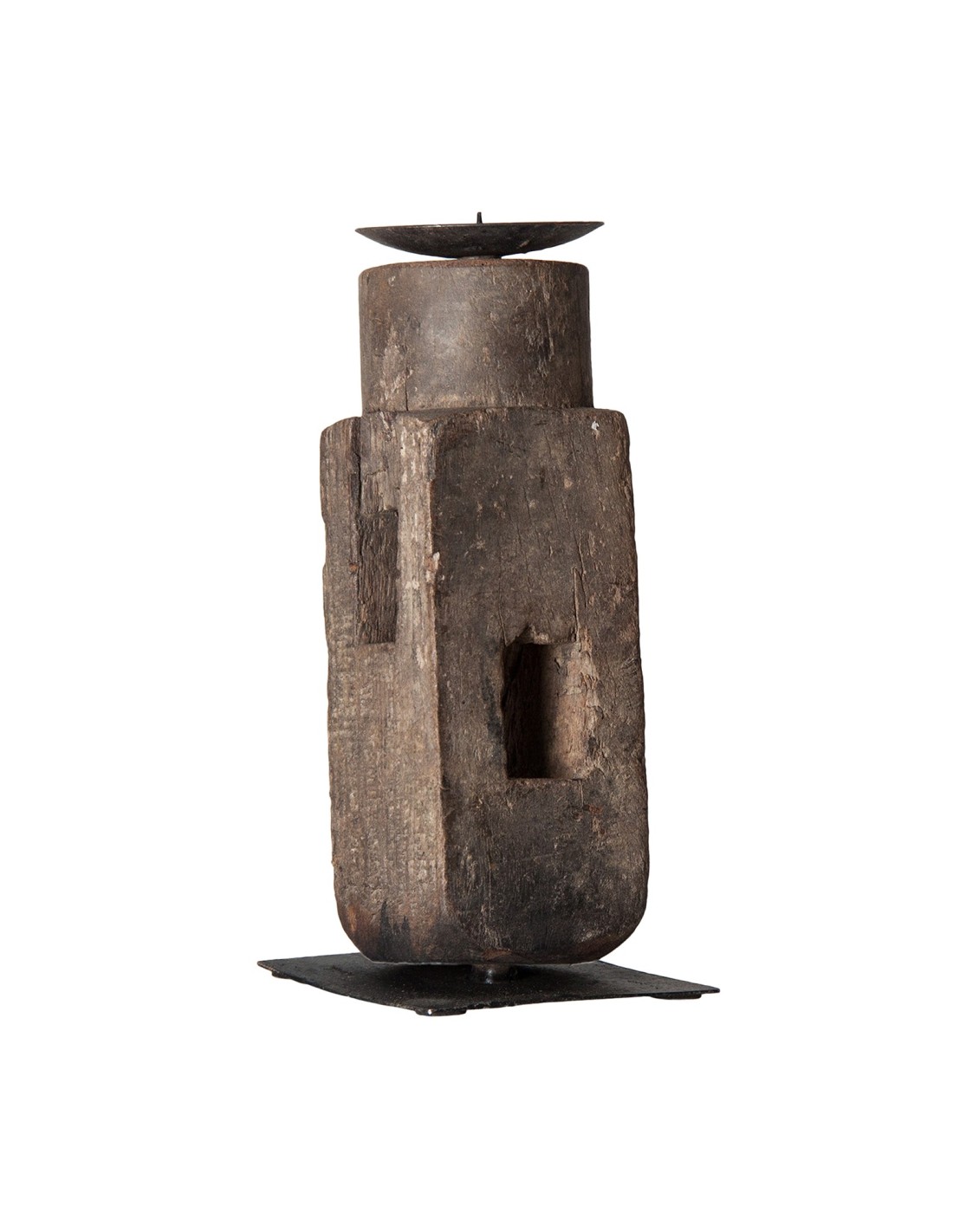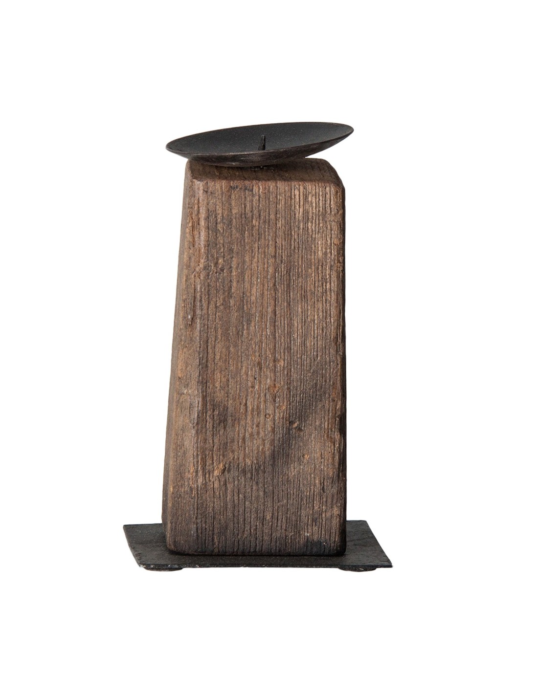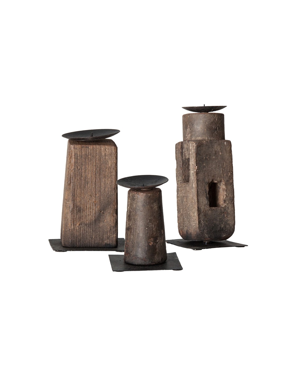 PORTAVELA J/3 ZWAIA, EN COLOR MARRÓN ENVEJECIDO, DE ESTILO ÉTNICO. FABRICADO EN MADERA DE MANGO RECICLADA.