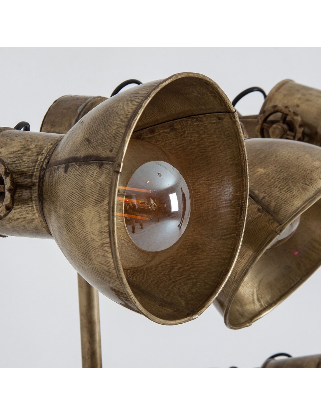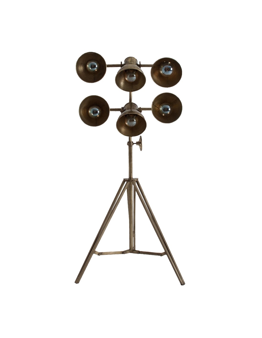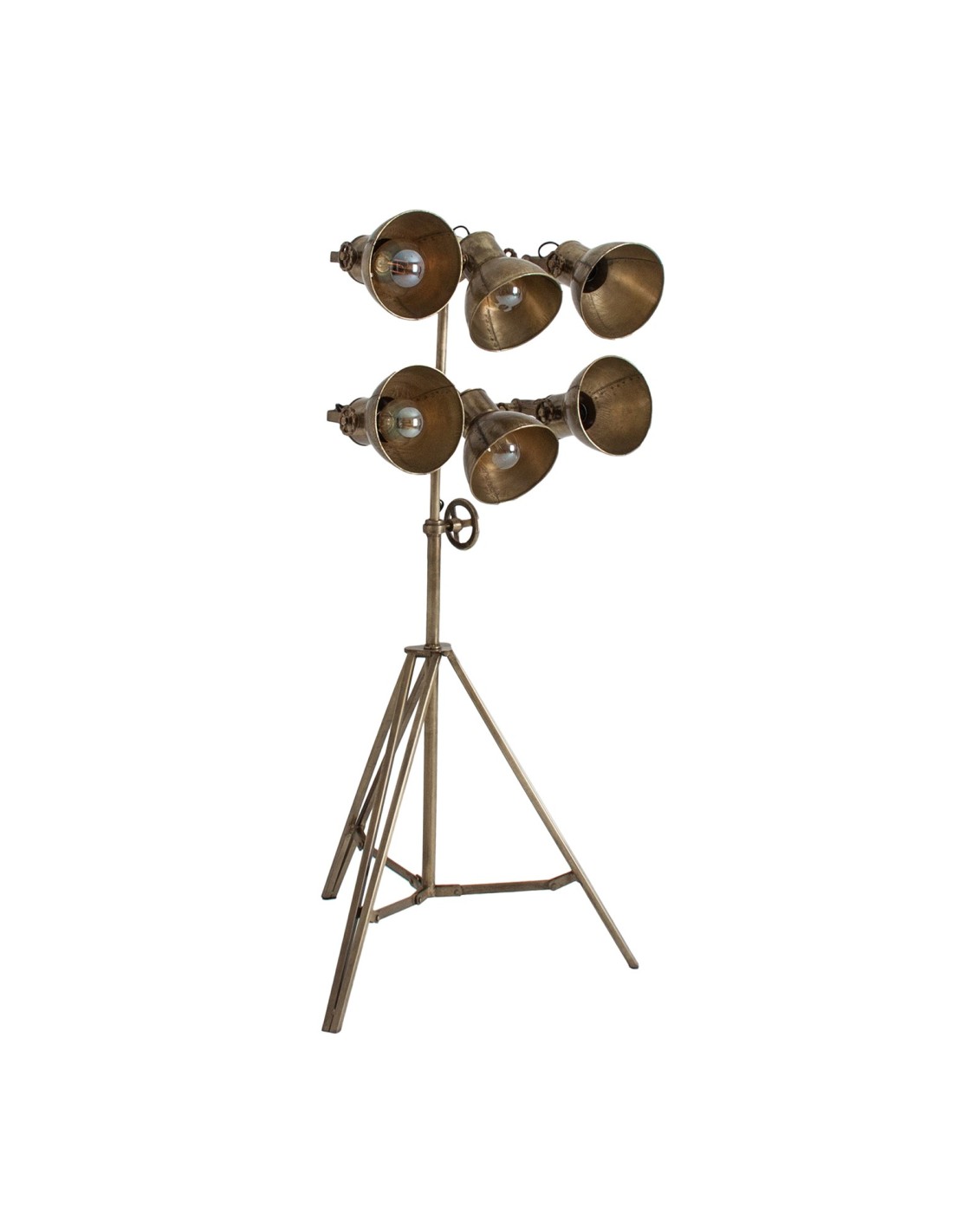 LÁMPARA DE PIE TRIPODE OTTAWA, EN COLOR ORO VIEJO, DE ESTILO VINTAGE. FABRICADO EN HIERRO. PRODUCTO ELEVABLE, PLEGABLE.