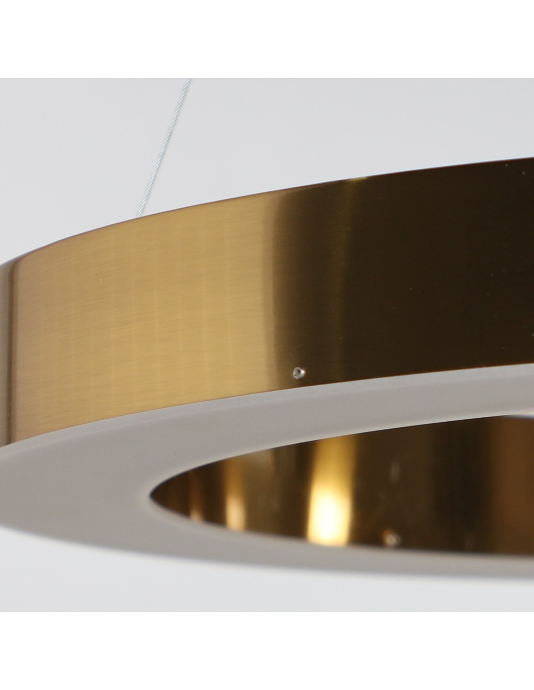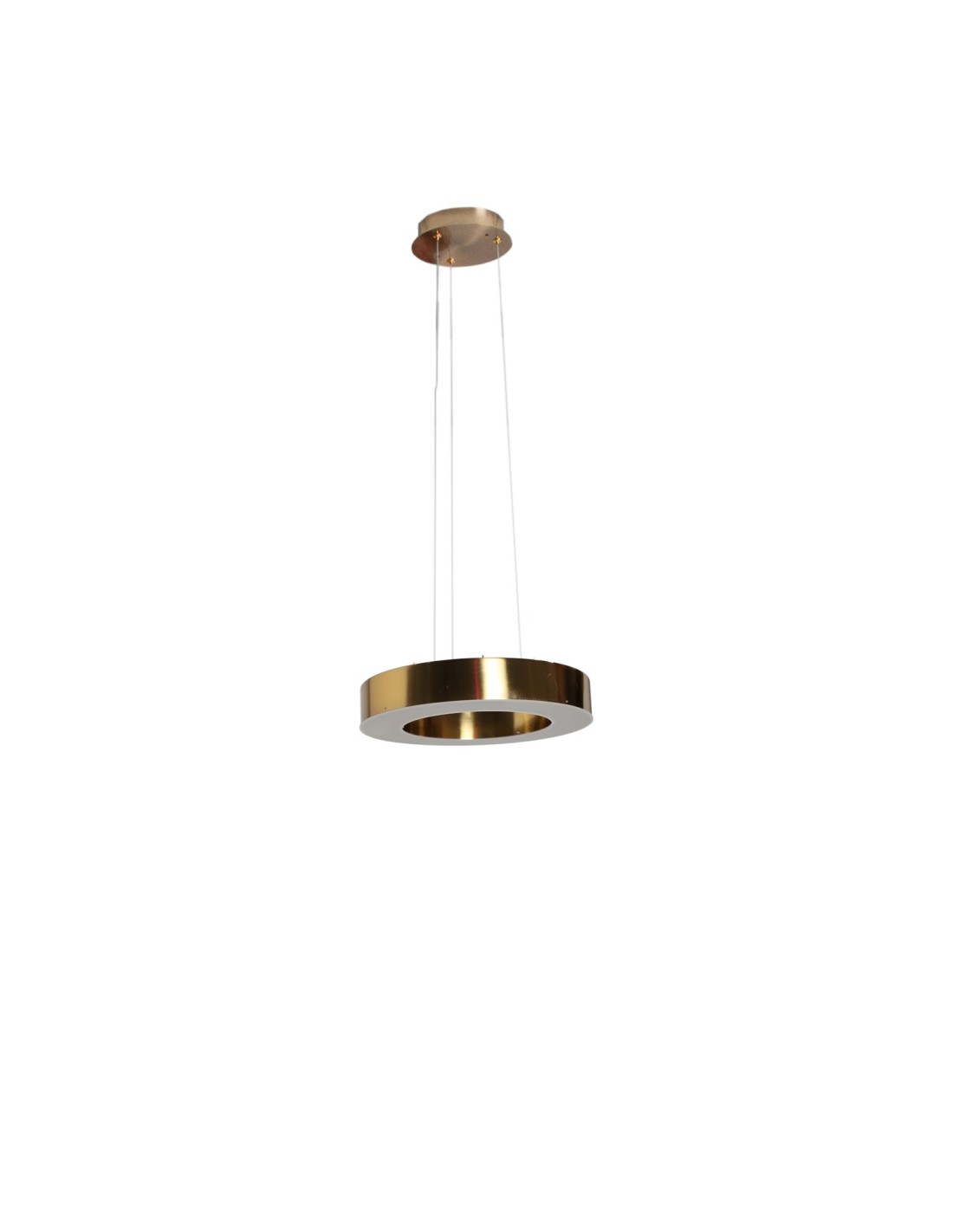 LÁMPARA DE COLGAR, EN COLOR ORO, DE ESTILO ART DECO. FABRICADO EN HIERRO. PRODUCTO EXTENSIBLE.