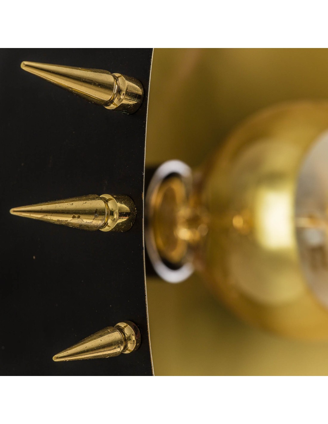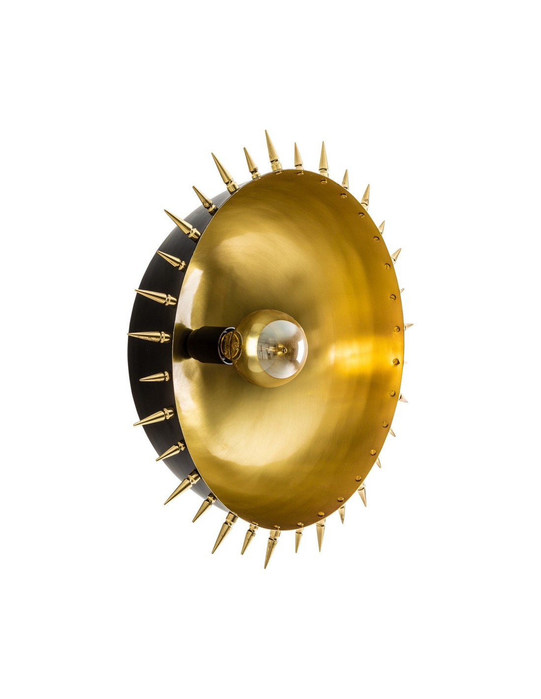 Sublime aplique de lámpara de color dorado estilo Art Decó. De forma circular e imitando una figura solar, esta pieza se convertirá en el centro de atención de un ambiente.