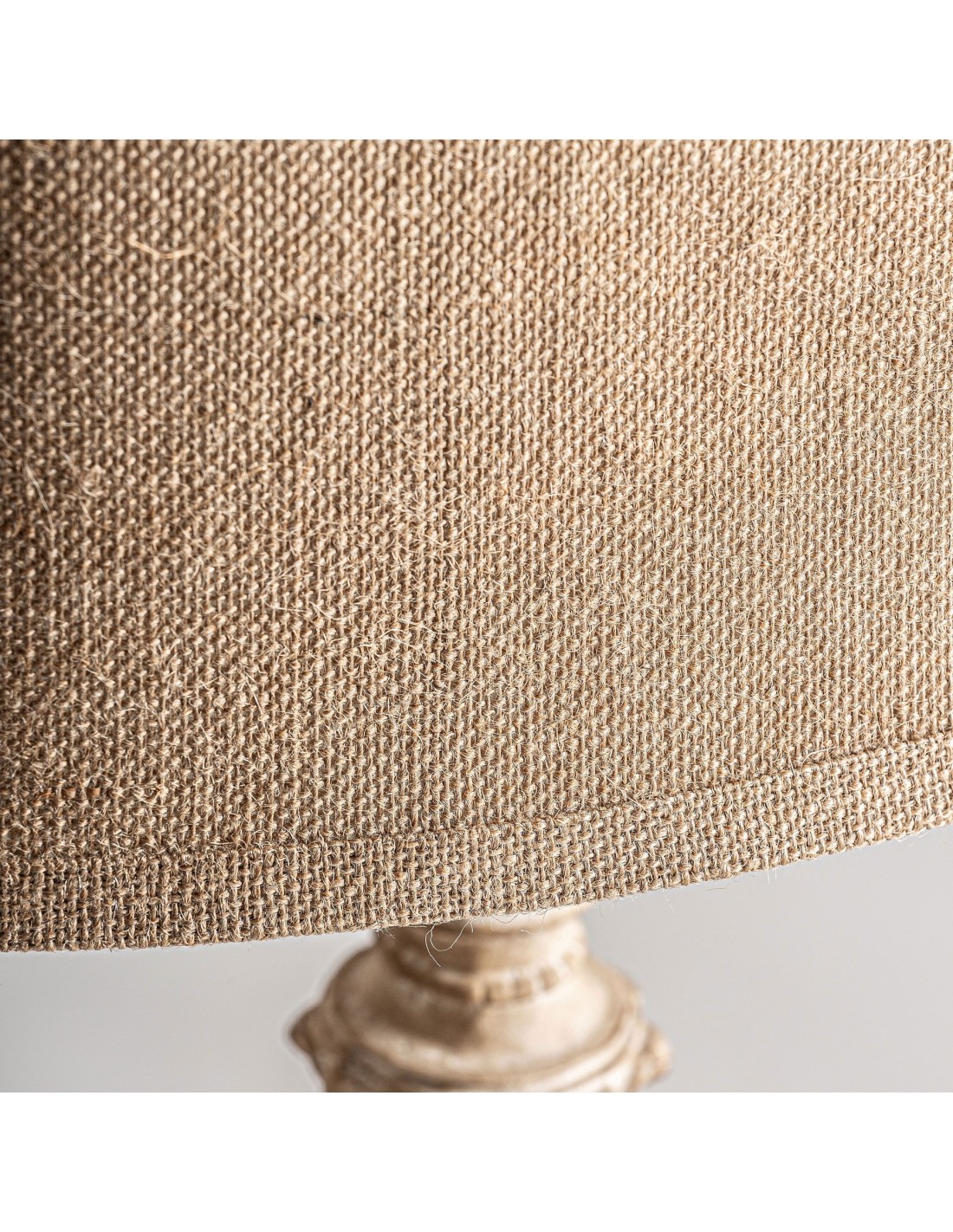 LÁMPARA DE PIE, EN COLOR BEIGE ENVEJECIDO, DE ESTILO PROVENZAL. FABRICADO EN RESINA, COMBINADO CON ALGODÓN. PRODUCTO DESMONTABLE.
