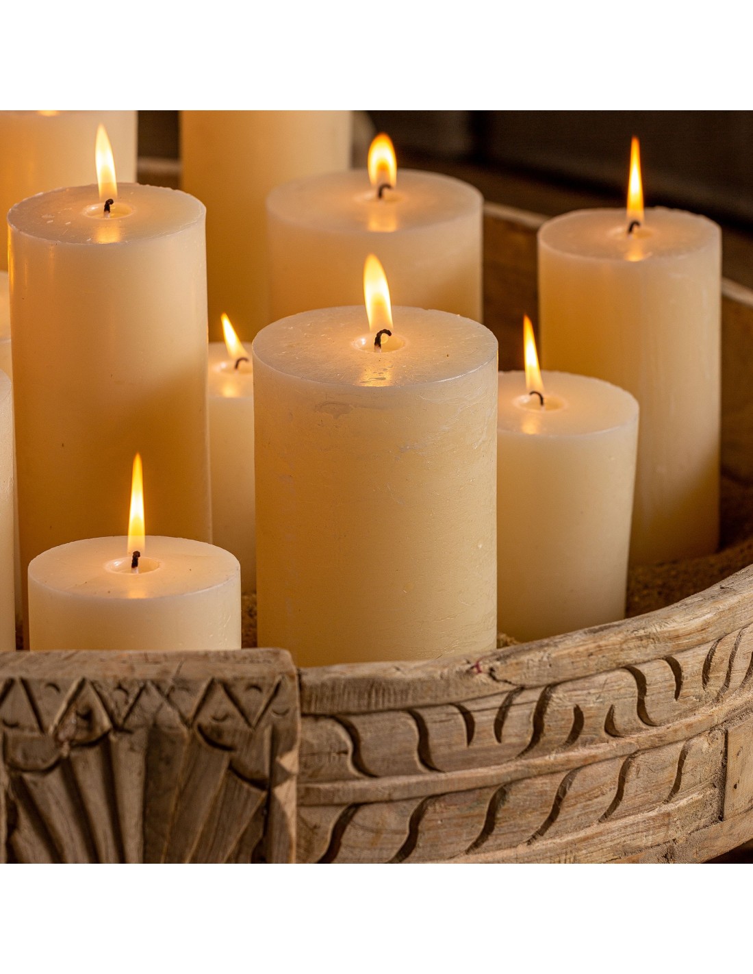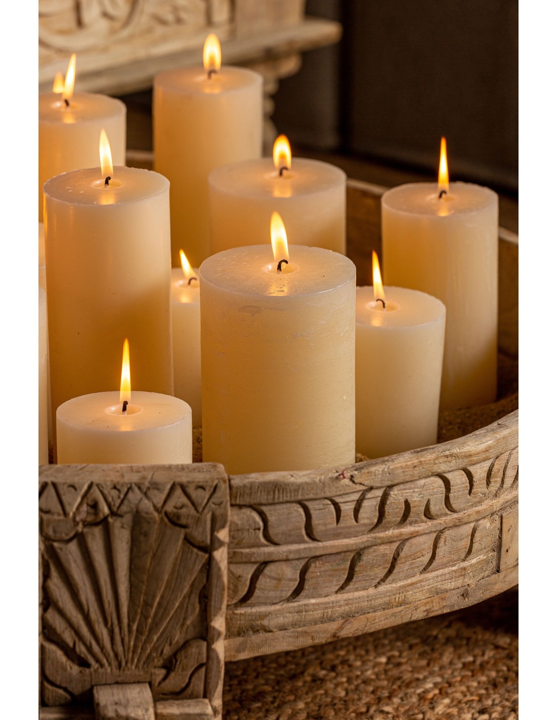 VELA REDONDA GRASLE, EN COLOR CREMA, DE ESTILO CLÁSICO. FABRICADO EN CERA.
