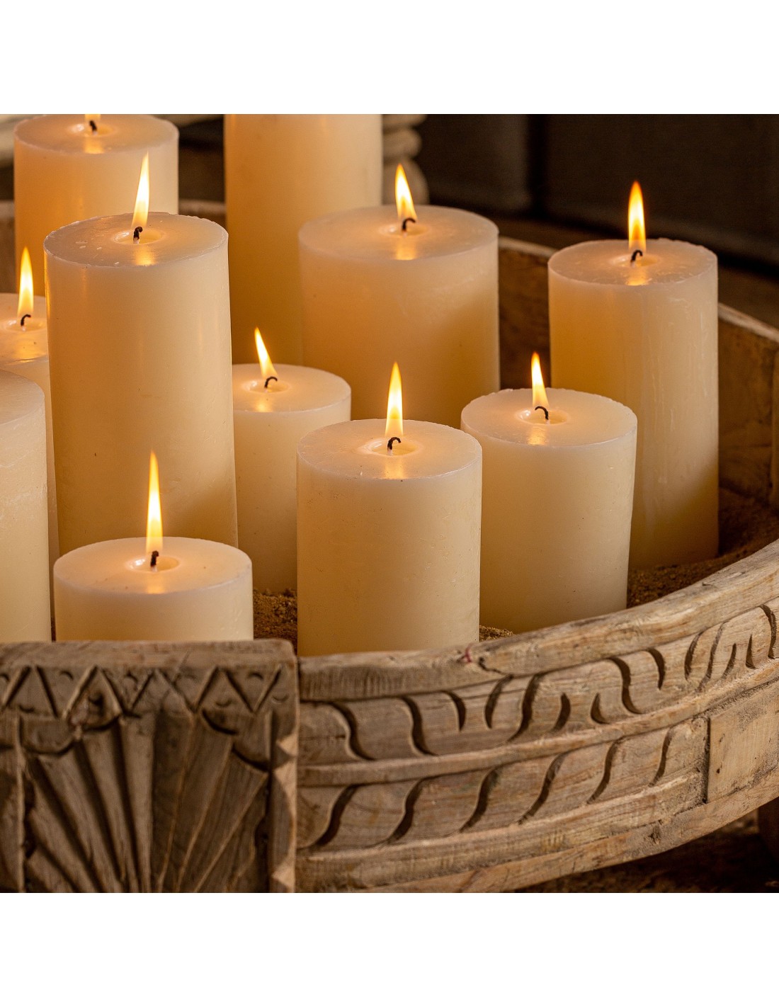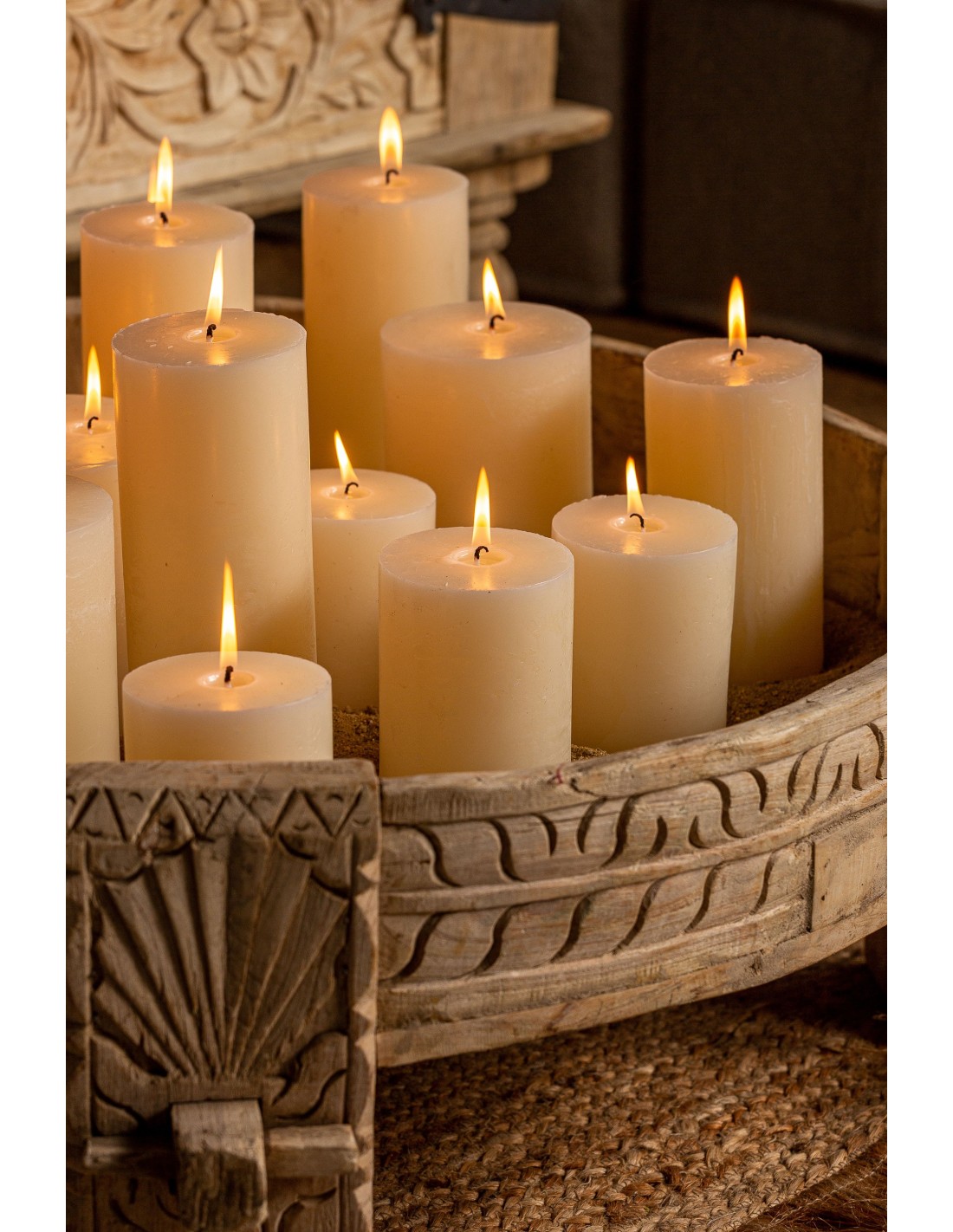 VELA REDONDA GRASLE, EN COLOR CREMA, DE ESTILO CLÁSICO. FABRICADO EN CERA.