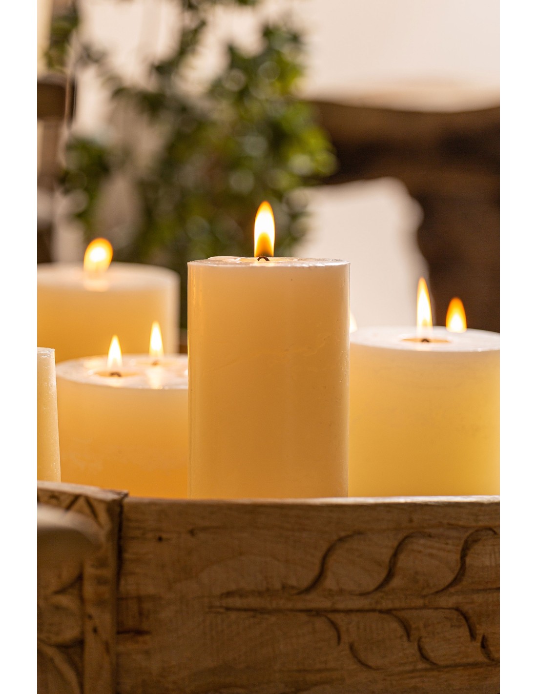 VELA REDONDA GRASLE, EN COLOR CREMA, DE ESTILO CLÁSICO. FABRICADO EN CERA.