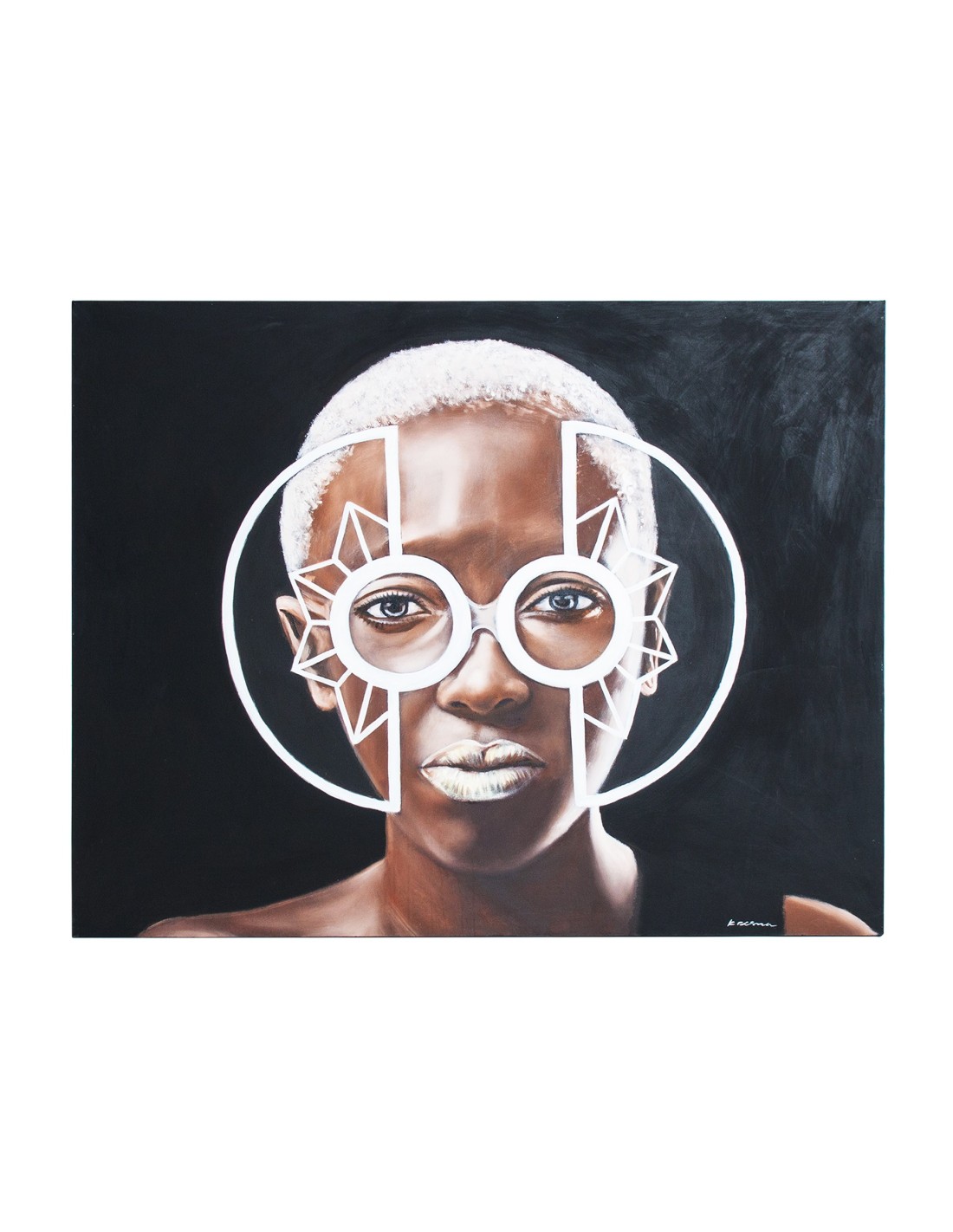 LIENZO RECTANGULAR KIRO, EN COLOR BLANCO/MARRÓN ARTESANAL, DE ESTILO ÉTNICO. FABRICADO EN LIENZO.