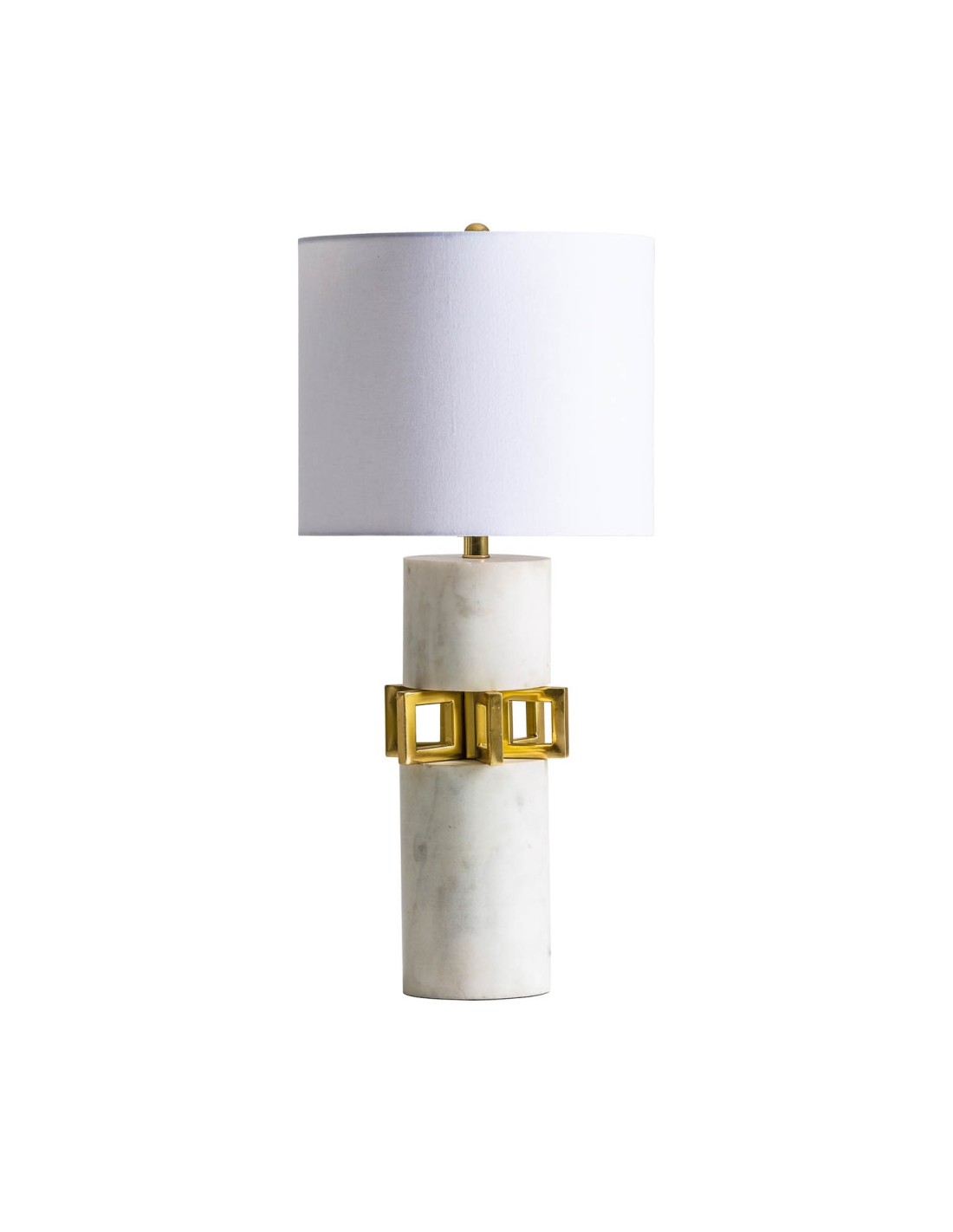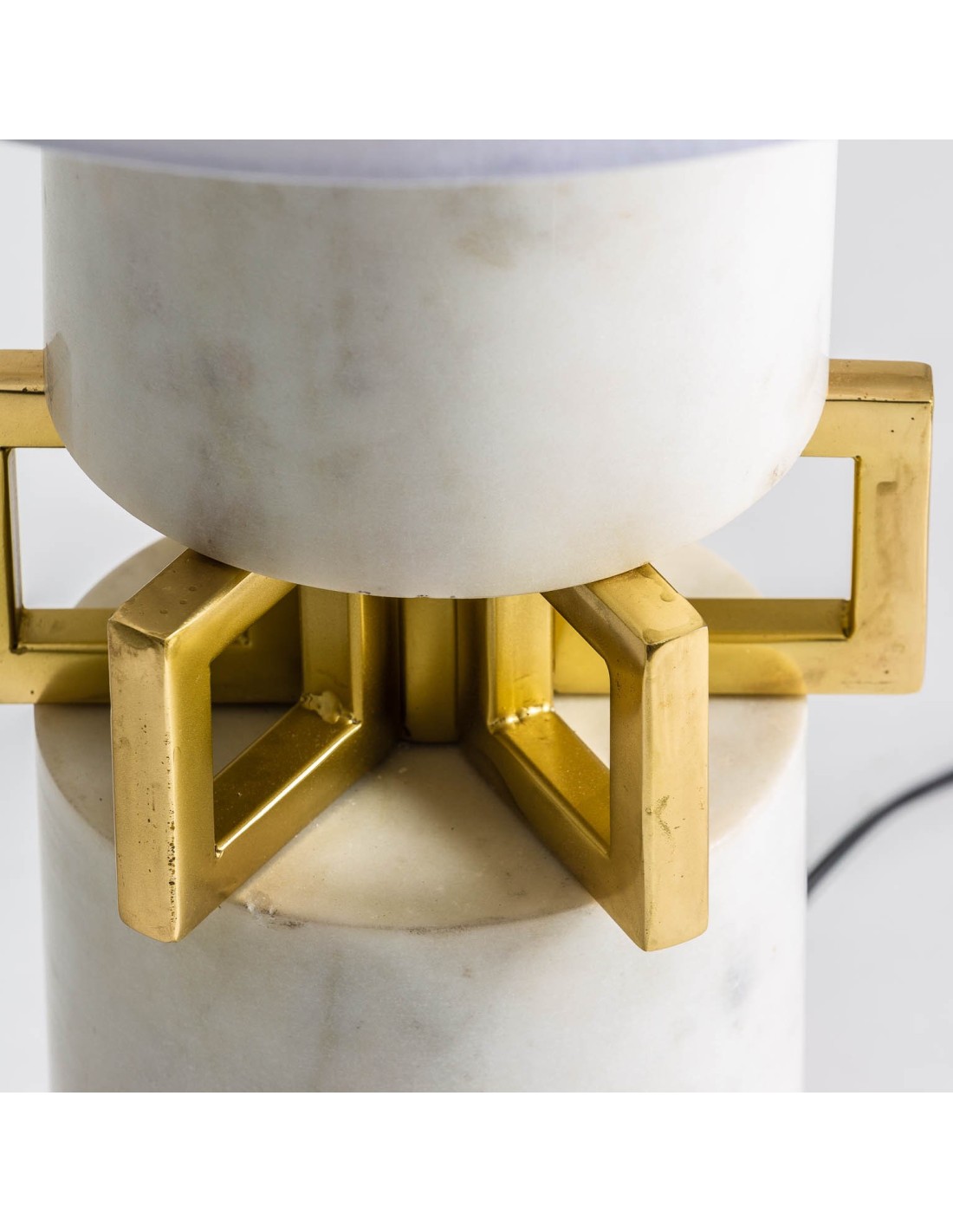 LÁMPARA DE SOBREMESA, EN COLOR BLANCO/ORO, DE ESTILO ART DECO. FABRICADO EN MÁRMOL, COMBINADO CON ALGODÓN. PRODUCTO DESMONTABLE.