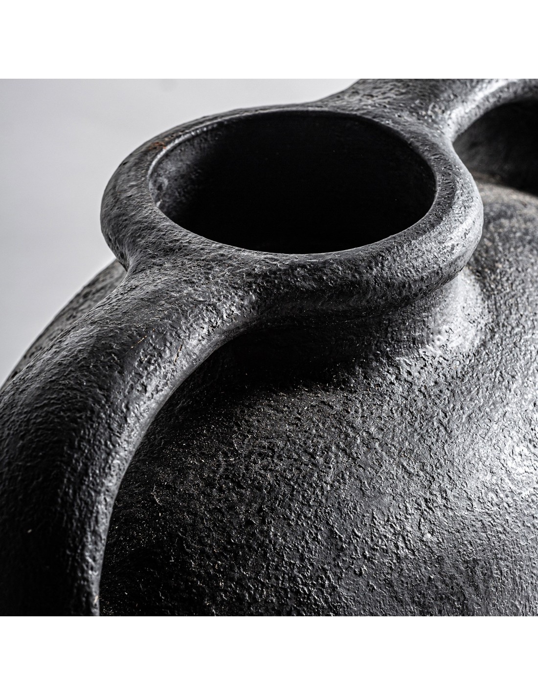 JARRÓN IBOR, EN COLOR NEGRO, DE ESTILO CONTEMPORÁNEO. FABRICADO EN TERRACOTA.