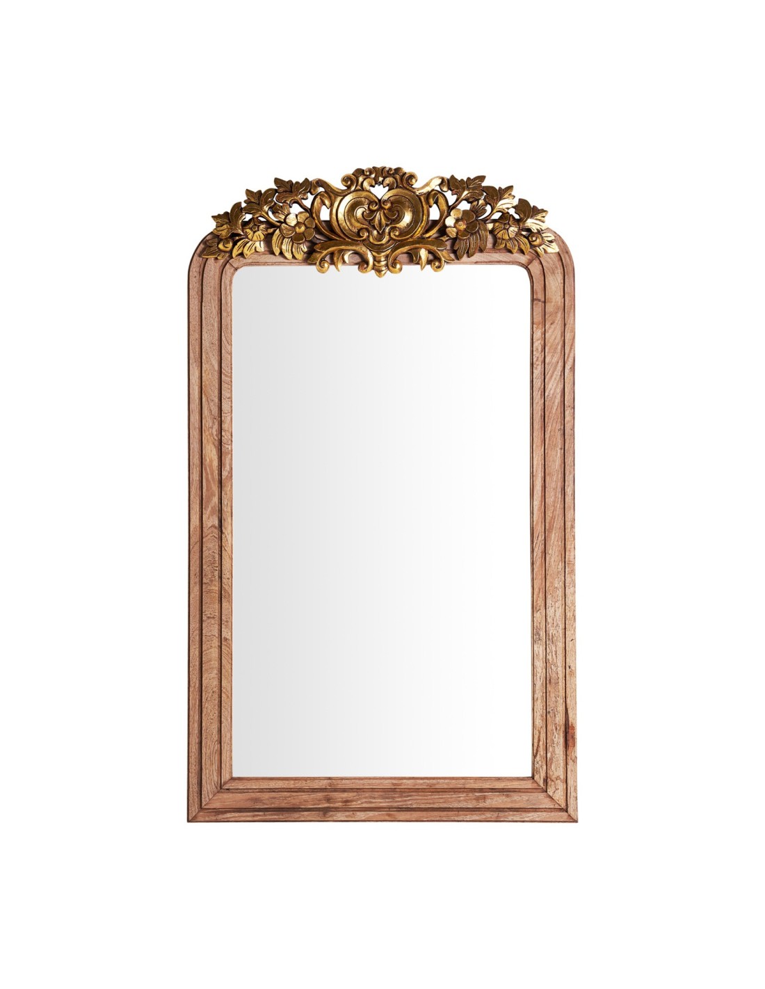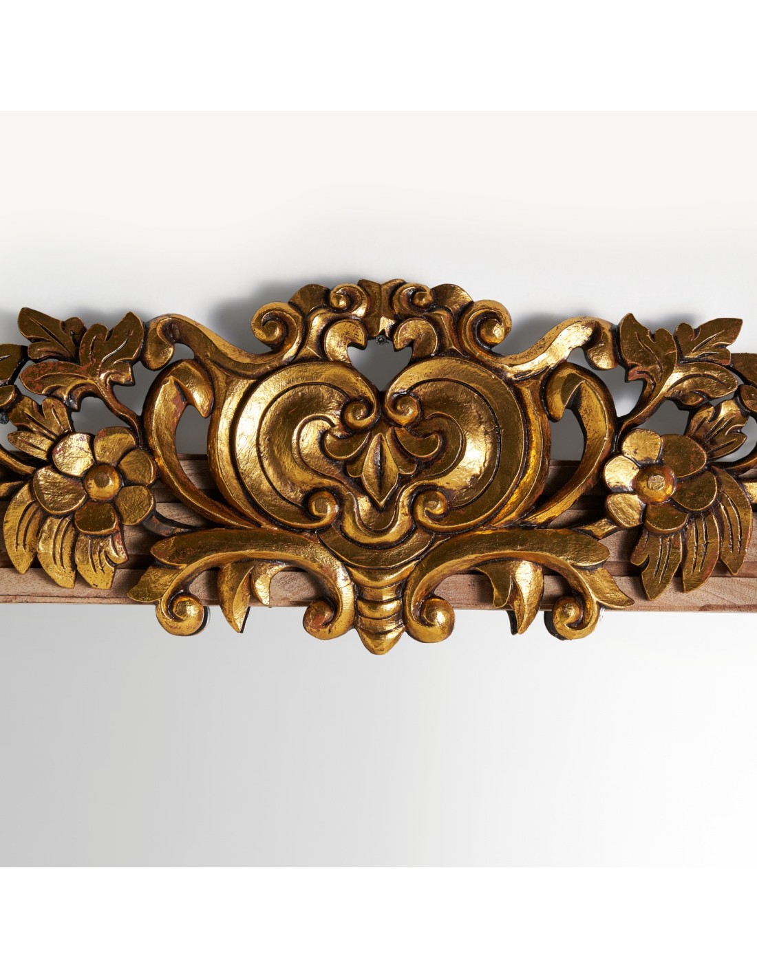 ESPEJO RECTANGULAR, EN COLOR MARRÓN/ORO TALLADO, DE ESTILO COLONIAL. FABRICADO EN MADERA DE TEKA, COMBINADO CON VIDRIO.