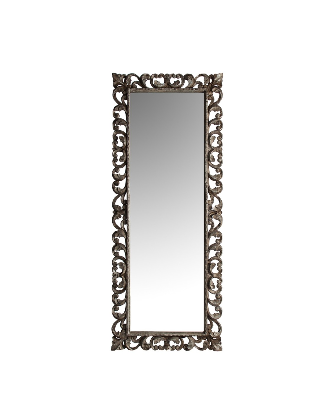 ESPEJO REALP, EN COLOR PLATA ENVEJECIDO, DE ESTILO COLONIAL. FABRICADO EN MADERA TROPICAL, COMBINADO CON ESPEJO.