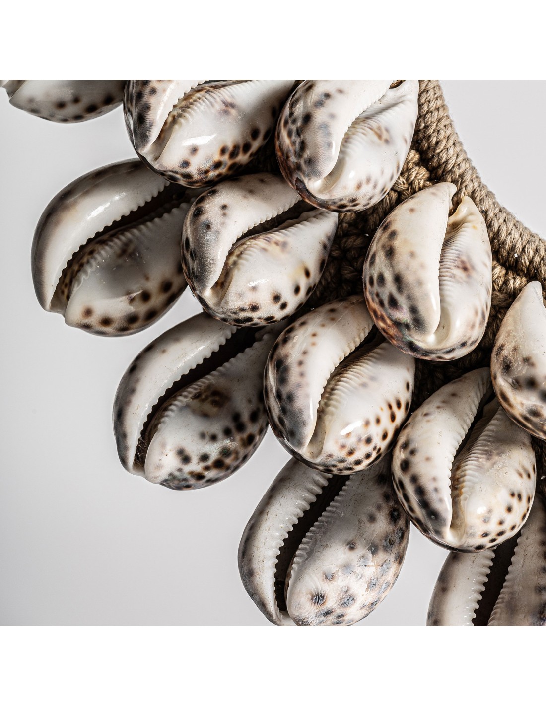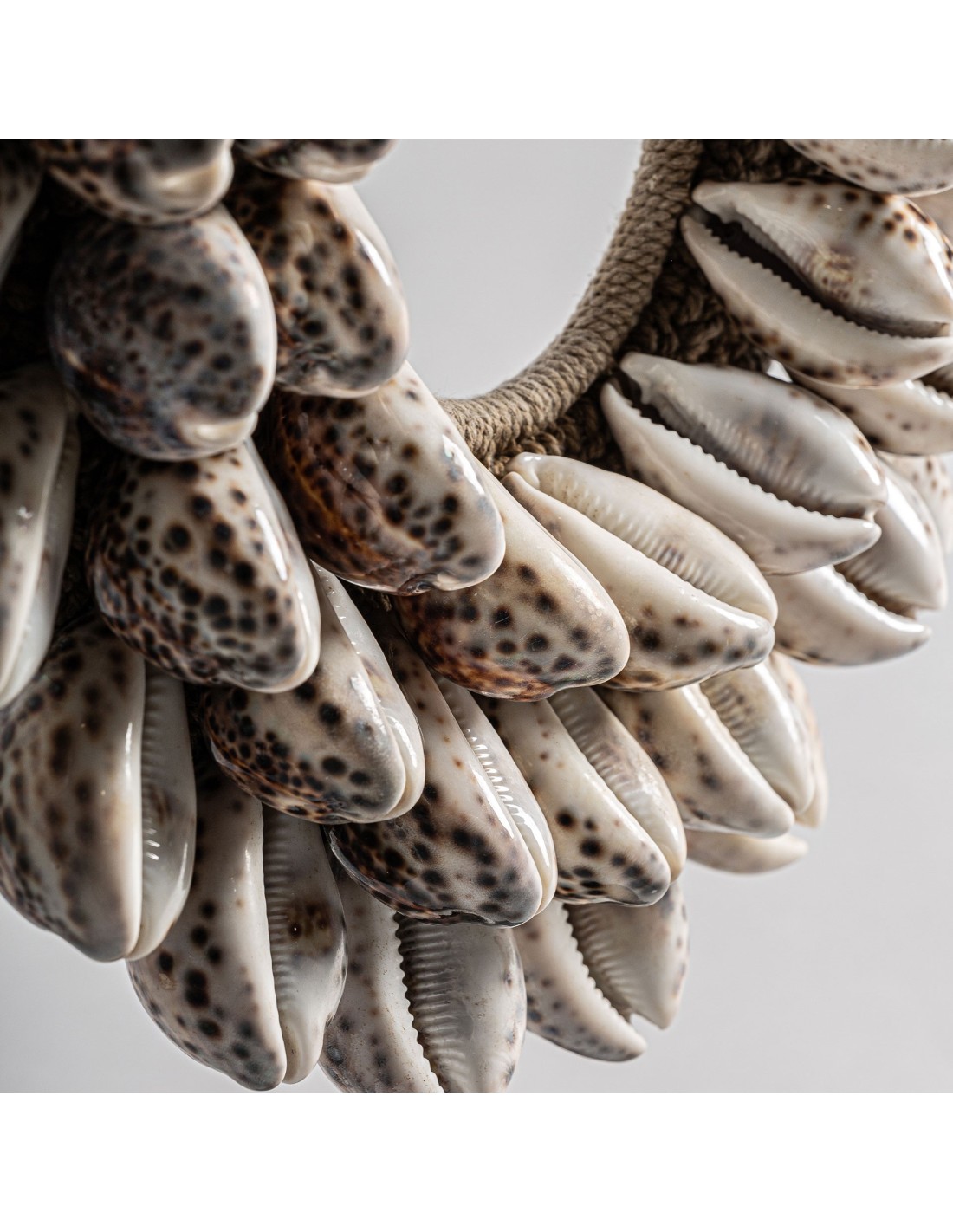 Figura collar inga, en color marfil, de estilo étnico. Fabricado en resina, combinado con concha y hierro. Fibra natural.