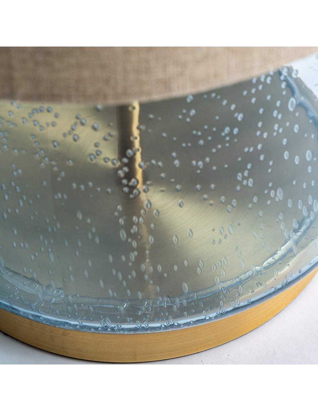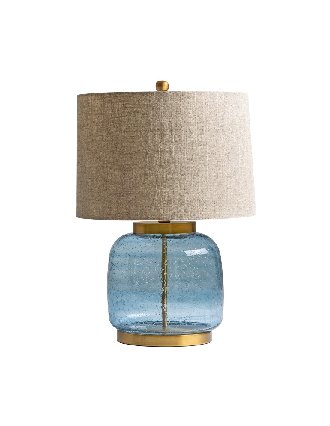 Lámpara de sobremesa, en color tonos de azul, de estilo art deco. Fabricado en hierro, combinado con lino. Producto desmontable.