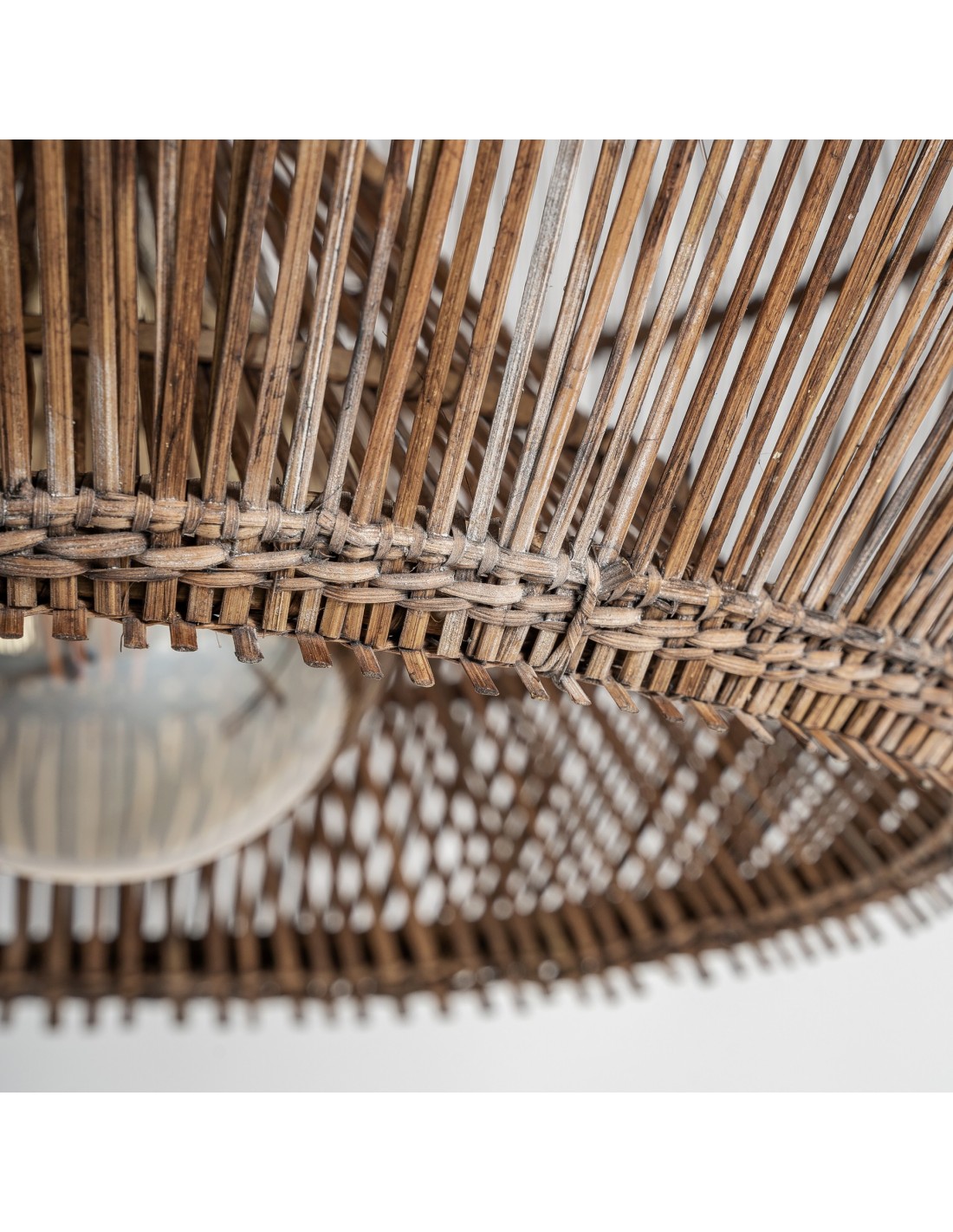 La lámpara Koba de Vical Home destaca por su diseño artesanal boho y contemporáneo, con estructura de bambú ligero y resistente que genera una luz cálida y difusa, perfecta para crear ambientes acogedores y elegantes.