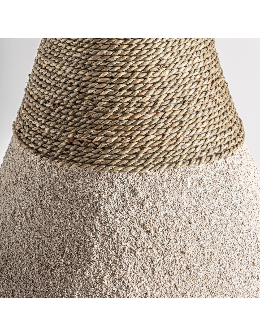 Material: resina crema con acabado rugoso y yute arena