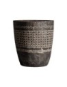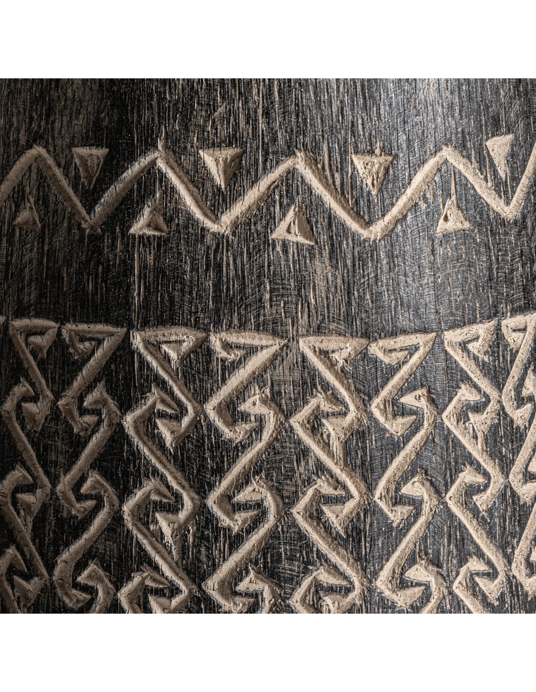 Fabricado en madera de palma tallada en tono marrón, este jarrón muestra una superficie con relieve natural que aporta profundidad visual y un carácter artesanal único. Las vetas y variaciones propias de la madera hacen que cada pieza tenga una personalidad distinta.