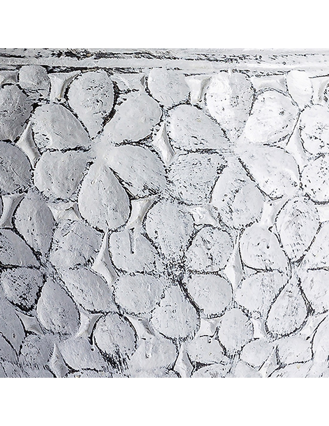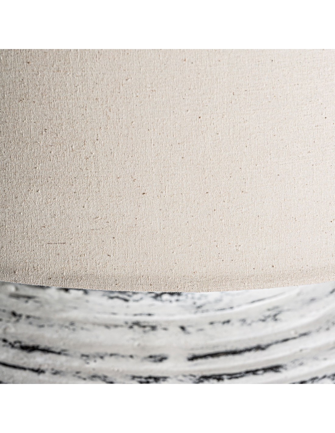 Lámpara de sobremesa de estilo shabby chic, fabricado en terracota en color blanco roto con acabado envejecido, combinado con poliéster. Producto desmontable.