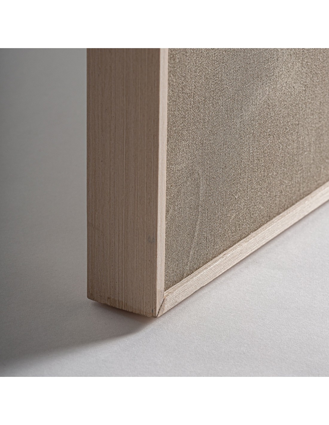 Lienzo cory, en color tonos en marrón artesanal, de estilo contemporáneo. Fabricado en lienzo, combinado con madera de pino.
