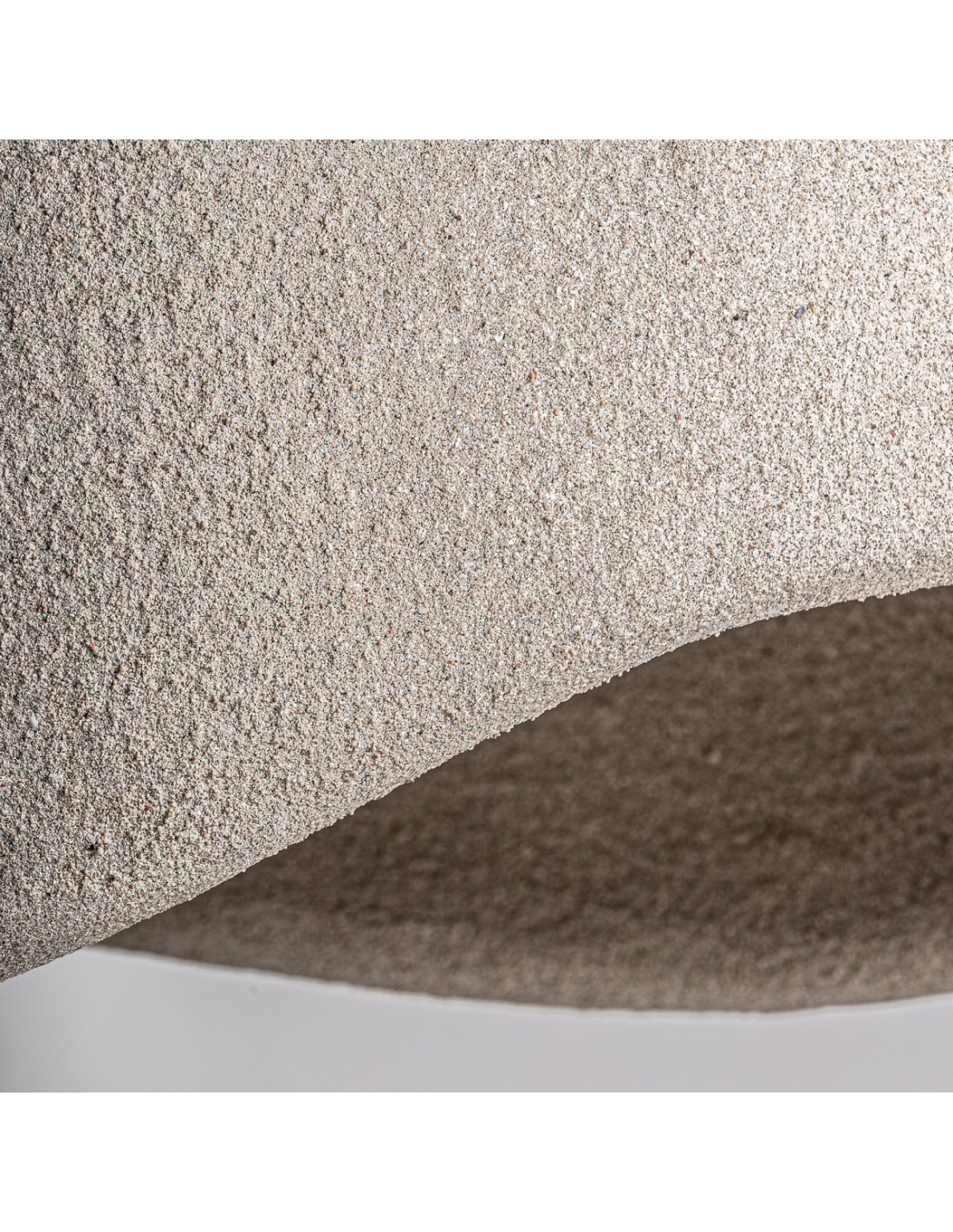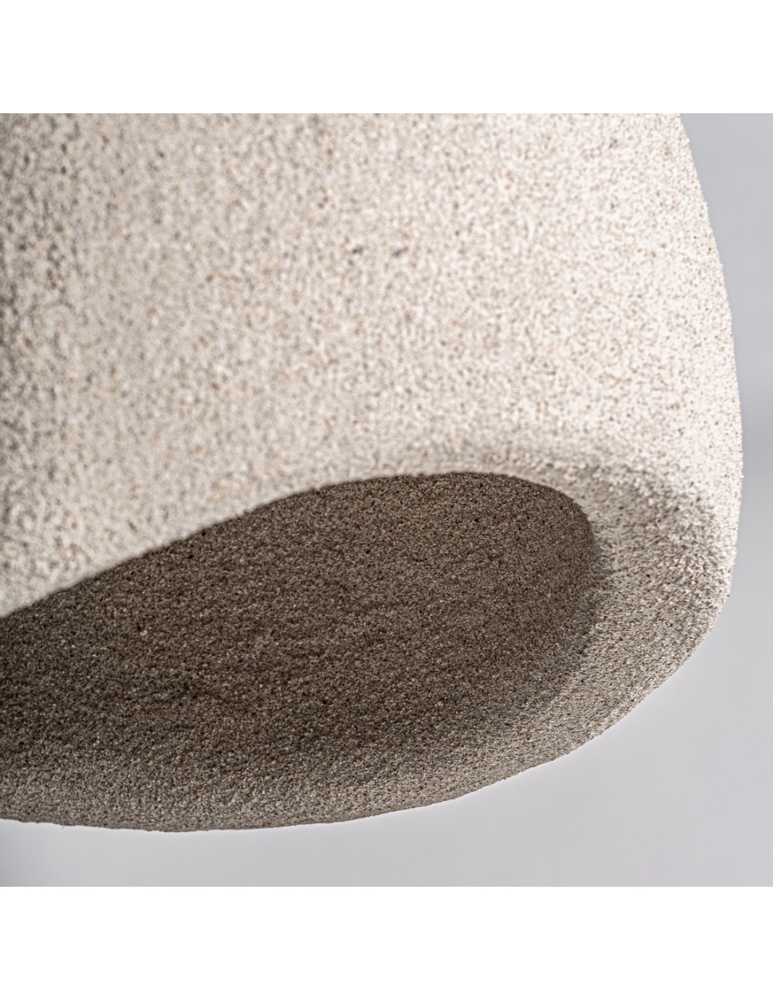 Fabricada en resina de alta calidad, esta lámpara presenta un acabado rugoso en tono blanco roto que aporta profundidad visual y carácter artesanal. Su tonalidad neutra permite integrarla fácilmente en interiores modernos, minimalistas o mediterráneos.