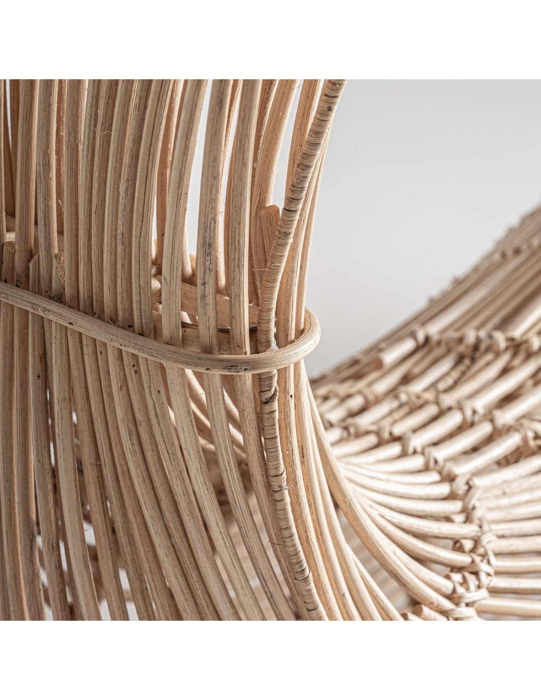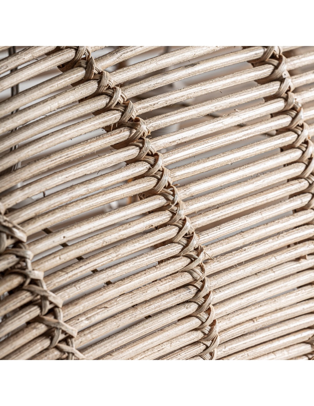 Su acabado artesanal en ratán crea un ambiente cálido y acogedor que combina con estilos mediterráneo, boho y natural.