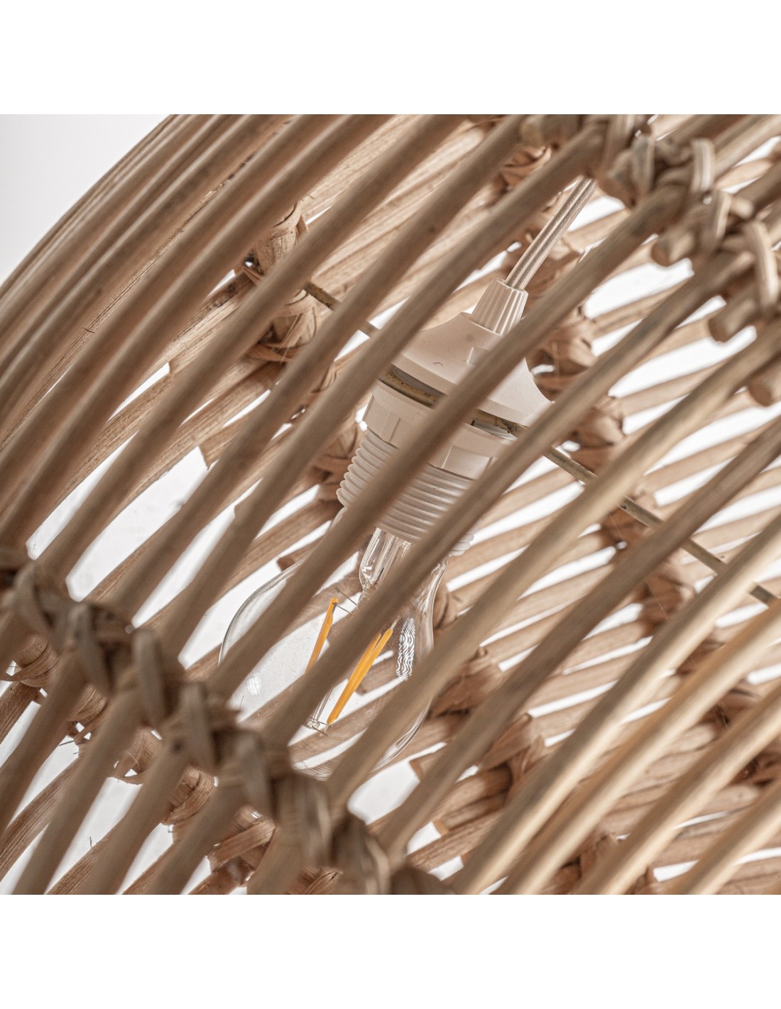 La estructura de ratán natural permite que la luz se filtre delicadamente, generando ambientes relajados, luminosos y con carácter.