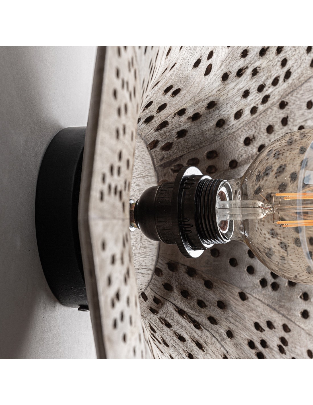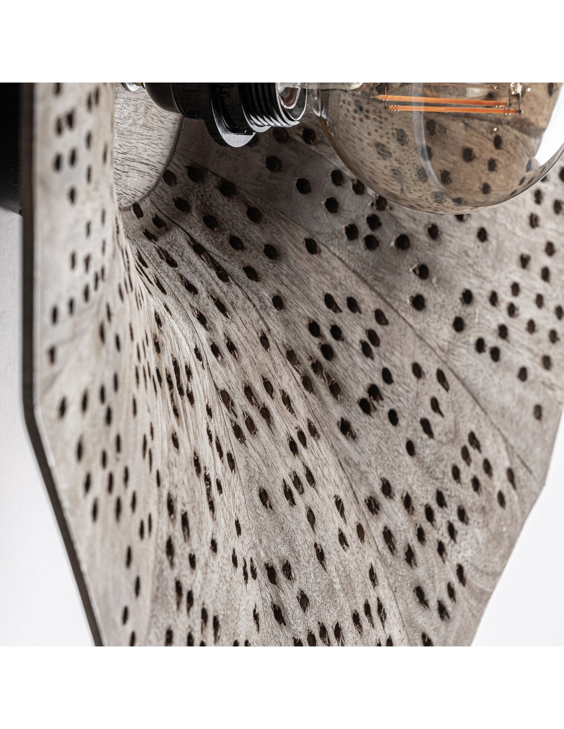 Cada lámpara es única, gracias a su acabado artesanal en madera natural.
