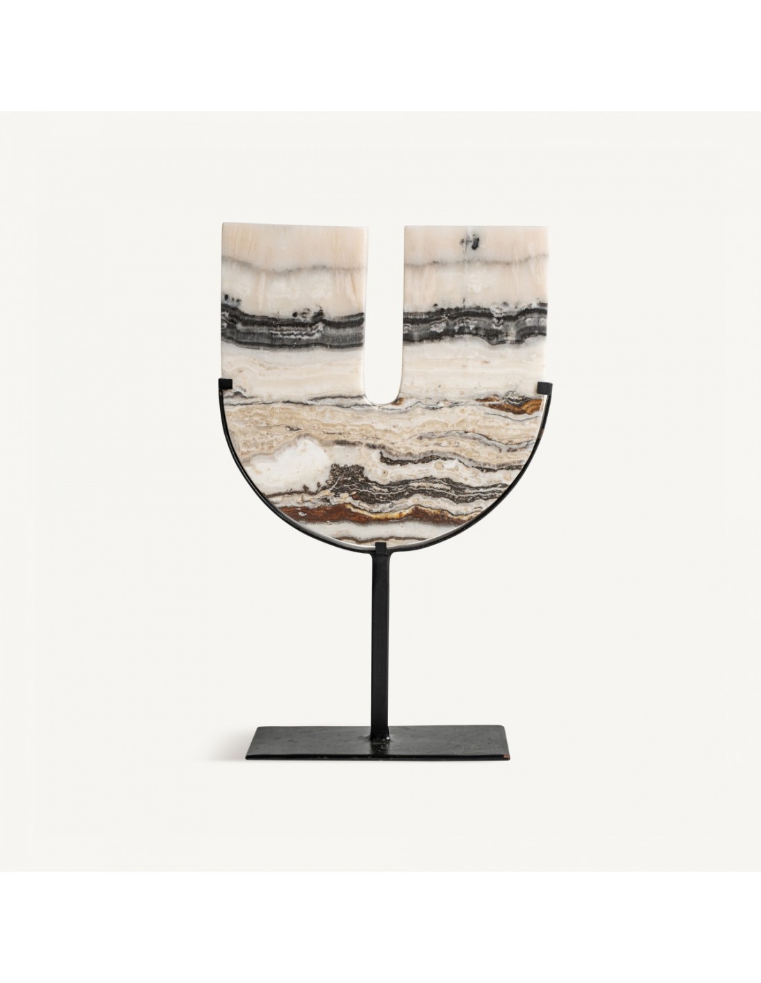 Figura decorativa de estilo nórdico, fabricado en mármol en color tonos neutros, combinado con hierro en color negro. Producto desmontable.