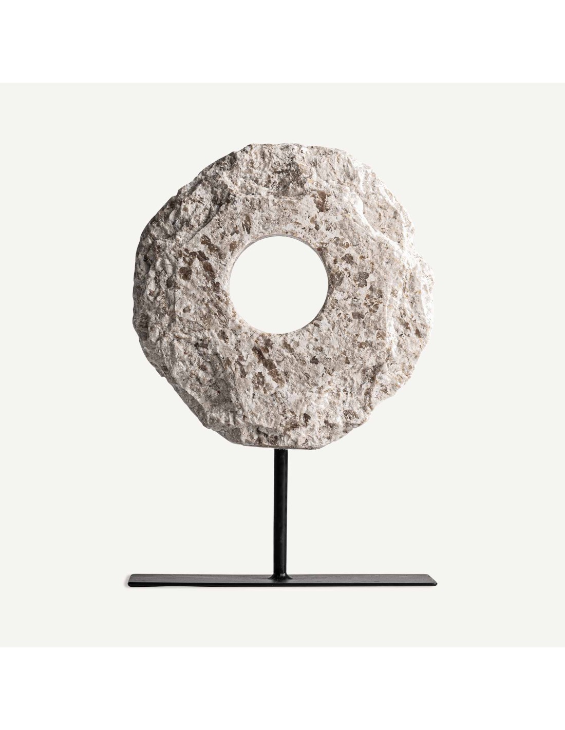 Esta figura decorativa de VICAL HOME es una obra de diseño nórdico que combina materiales naturales con una estética serena y equilibrada. Fabricada en piedra en tono blanco roto y estructura en hierro negro, esta pieza transmite fuerza y minimalismo a partes iguales.