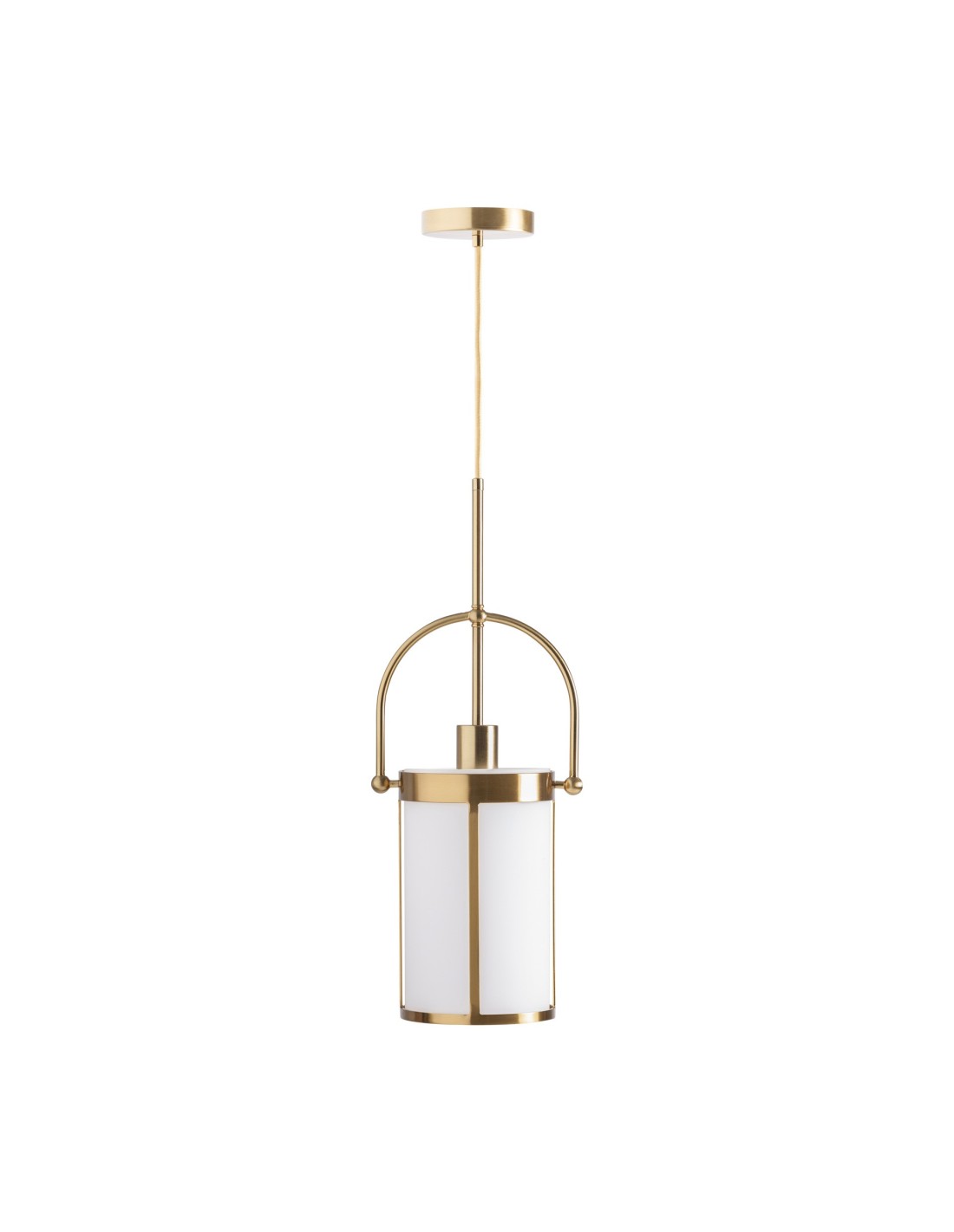 La lámpara colgante de Vical Home combina una estética depurada con materiales nobles y acabados elegantes. Su cuerpo de cristal blanco permite una iluminación suave y uniforme, ideal para crear ambientes cálidos y acogedores. El soporte de acero en tono bronce añade un toque clásico y sofisticado, perfecto para interiorismos que buscan personalidad y distinción.