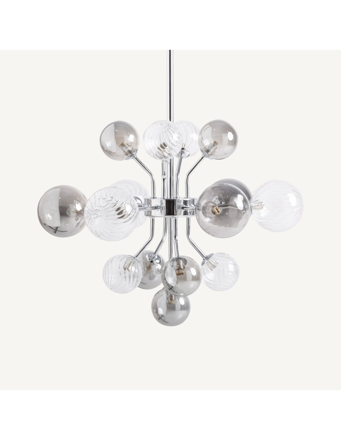 La lámpara de colgar en cristal gris ahumado y acero plata de Vical Home destaca por su sofisticación, su estilo contemporáneo y su gran presencia visual. Su diseño vertical, con una altura total de 133 cm, convierte esta luminaria en una pieza decorativa protagonista, ideal para techos altos o espacios amplios donde la elegancia y la luz deben ir de la mano.