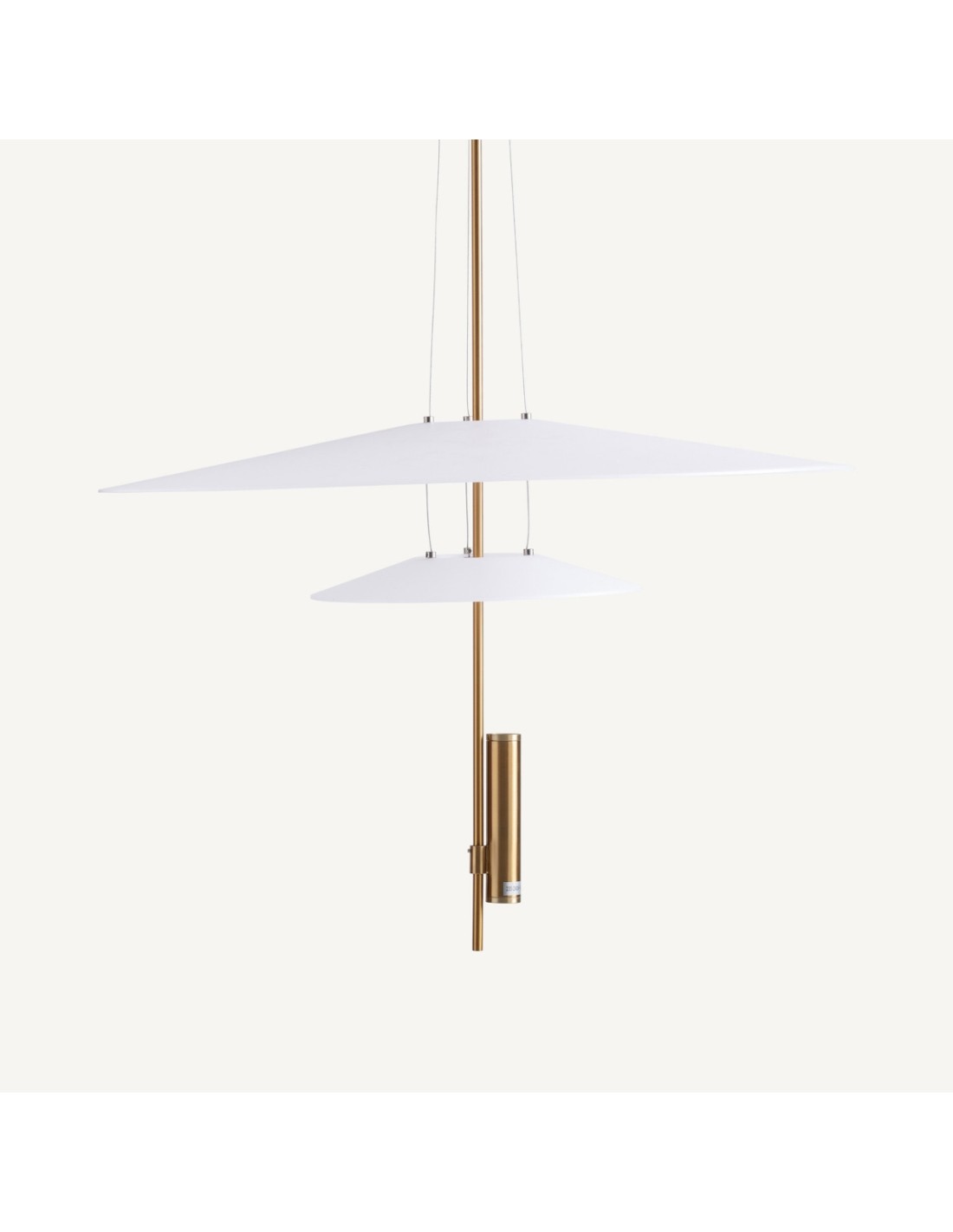 La lámpara de colgar Vical Home en acrílico blanco y acero cobre es una pieza de iluminación que combina funcionalidad y diseño sofisticado. Su pantalla amplia de acrílico blanco ofrece una luz difusa y agradable, perfecta para crear ambientes acogedores y contemporáneos.