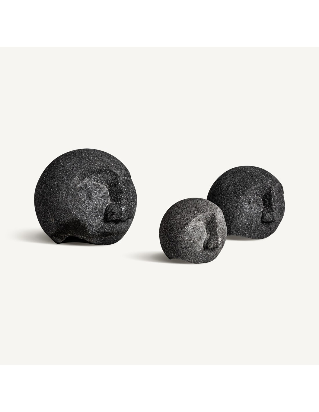 Juego de 3 figuras decorativas fabricadas en auténtica piedra volcánica negra. Disponibles en tamaños grande, mediano y pequeño, perfectas para aportar un toque natural y sofisticado a cualquier espacio.